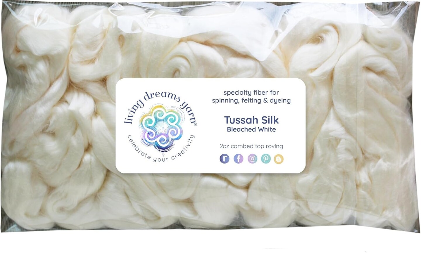 2oz Tussah Silk Fiber: Premium Grade Glossy Combed Top Roving. Hand Spinning, Blending, Felting, Dyeing, Paper & Soap Making.