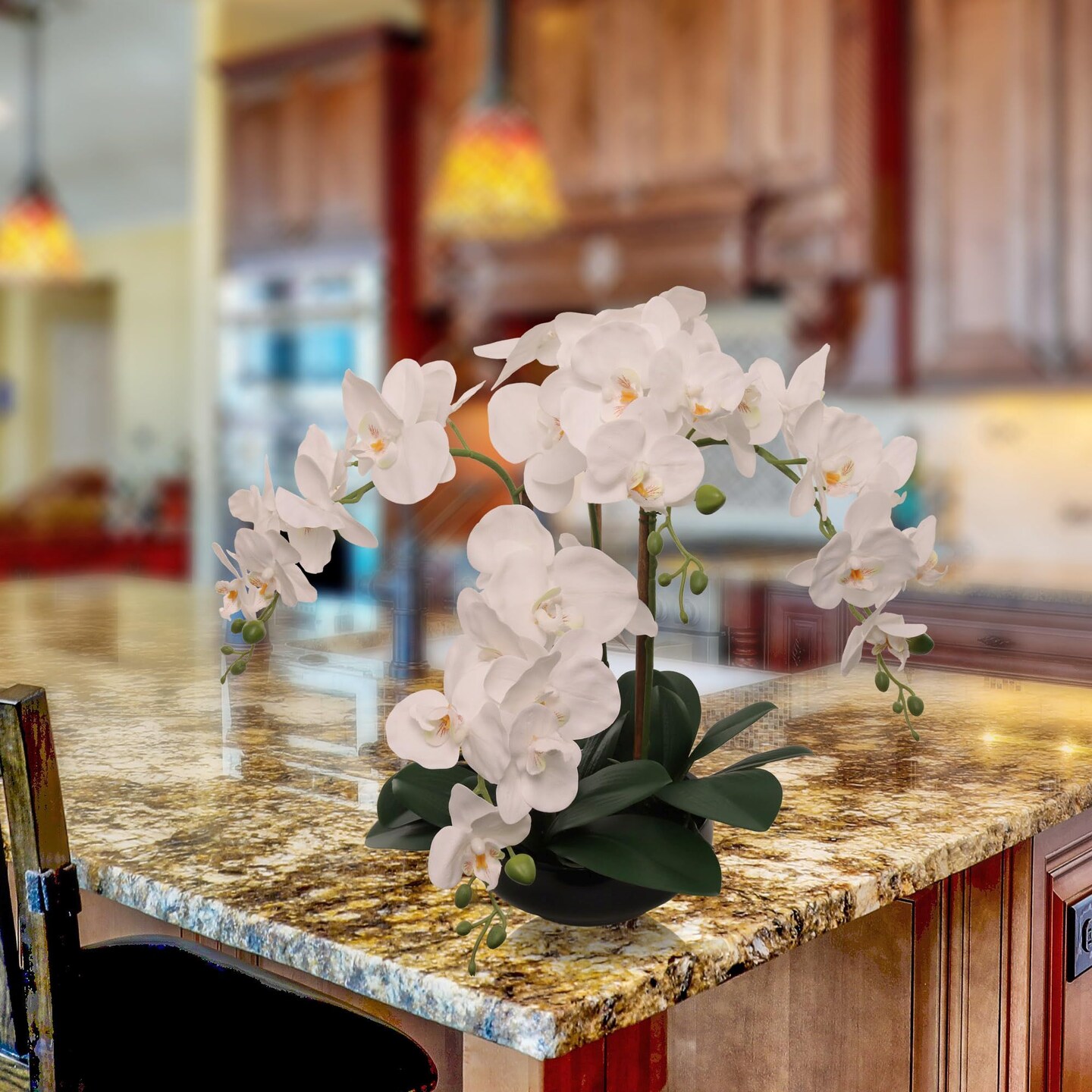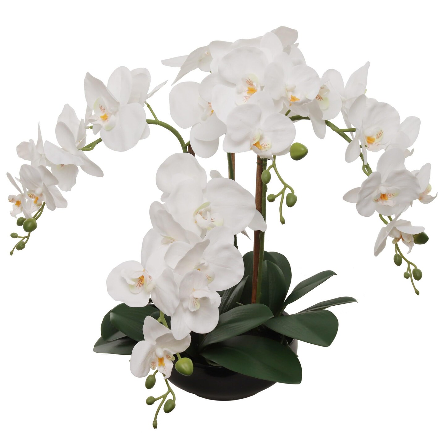 2-Pack 20" White Phalaenopsis Orchids | Faux Floral Arrangements in Black Round Pots – Sophisticated Multi-Room Decor