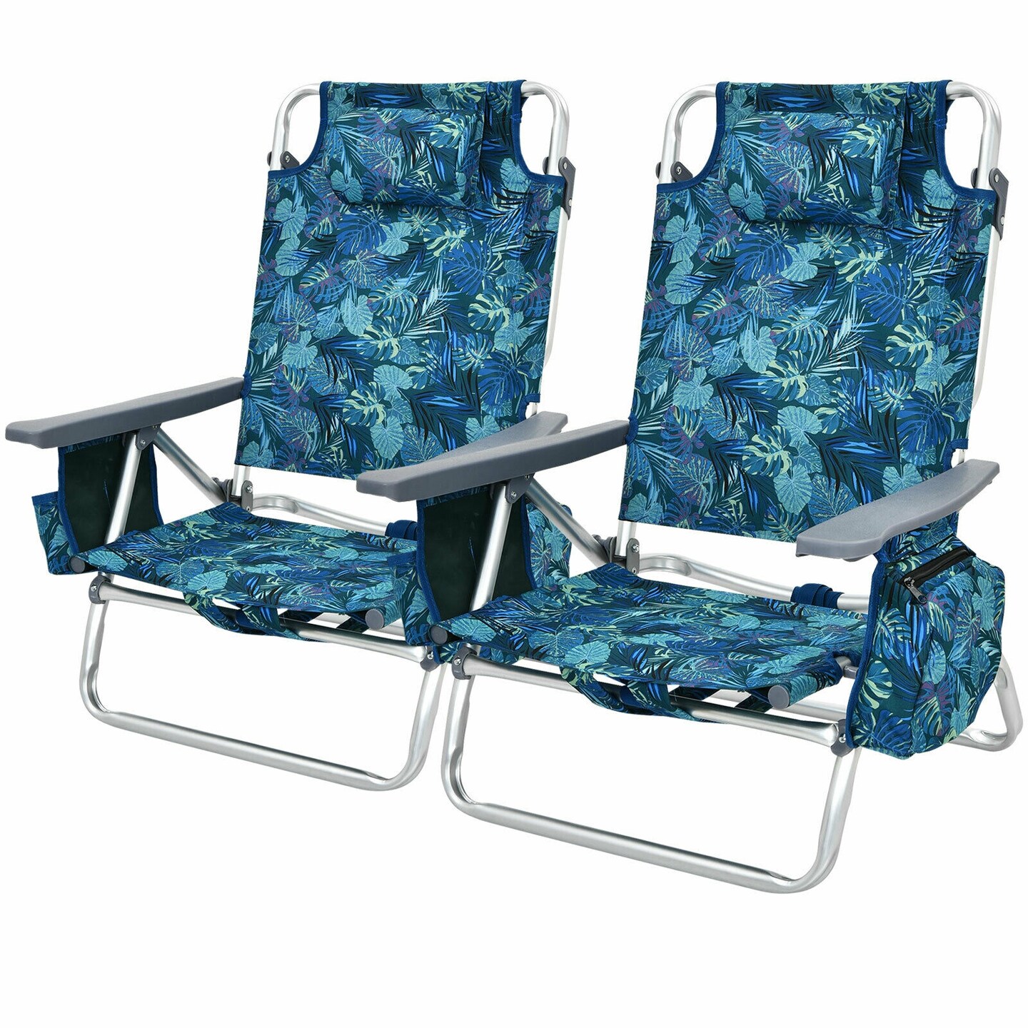 2-Pack 5-Position Folding Backpack Beach Reclining Chairs with Pillow