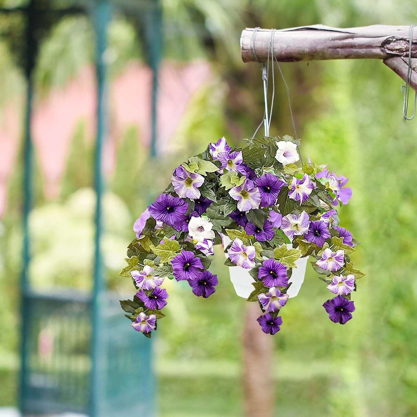 2Pack Artificial Hanging Flowers,24 Heads Silk Morning Glory Flowers(Purple,White)