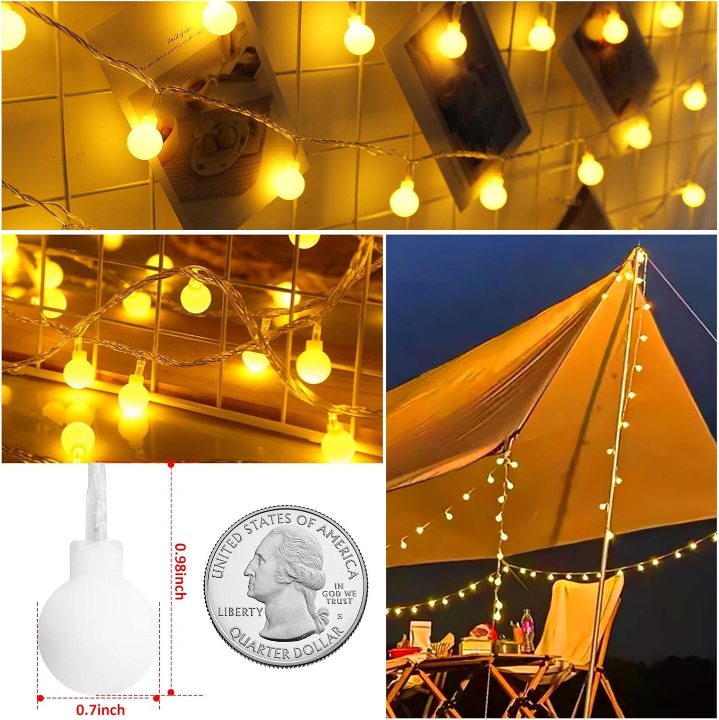 2-Pack Battery Operated LED Globe String Lights - 52FT, 120LEDs