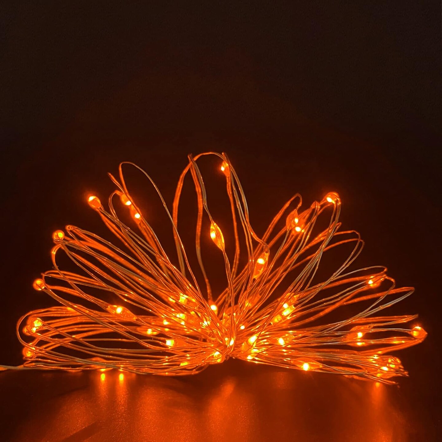 2-Pack Battery-Operated Dewdrop Mini Fairy Lights with Timer – 10 ft Silver Wire String Lights, 30 Orange LEDs, 6H On/18H Off Timer for Christmas, Halloween & Indoor Holiday Décor (Orange)