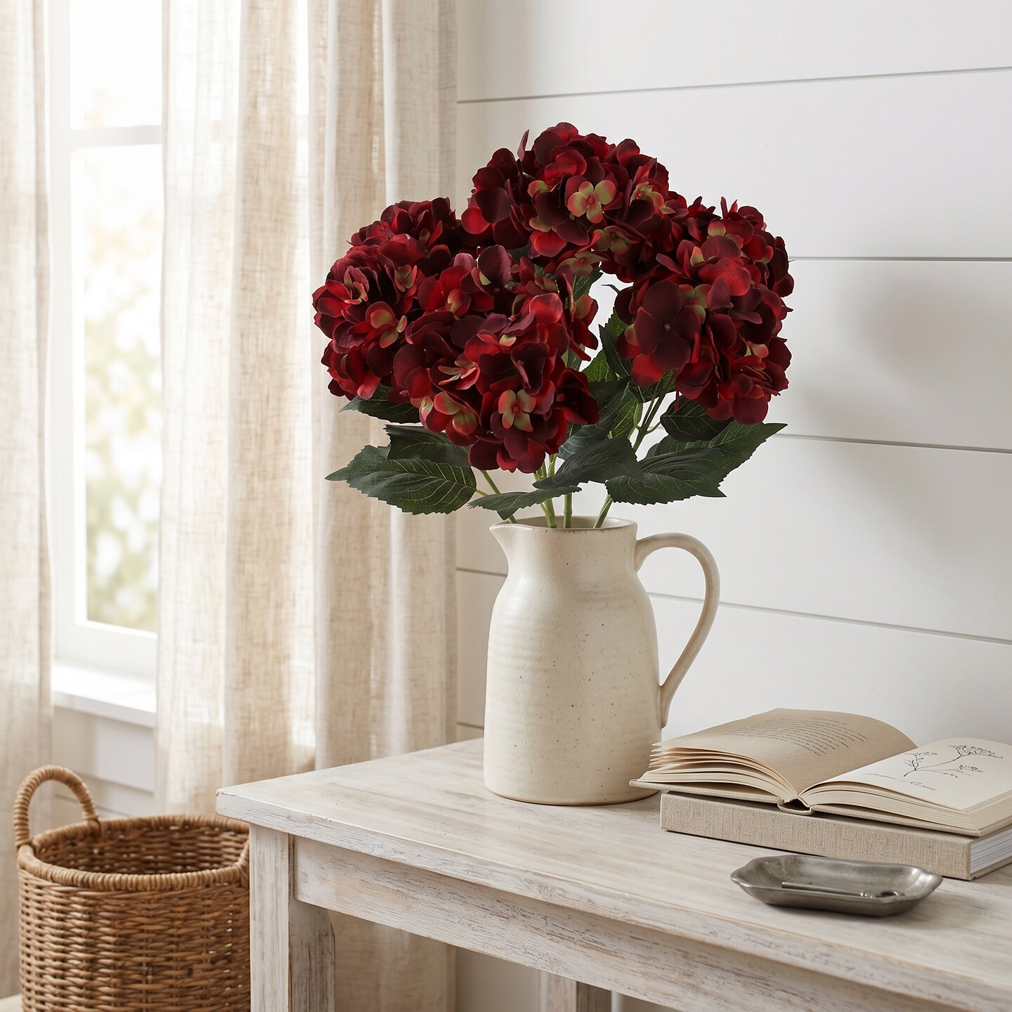 2-Pack: Burgundy Hydrangea Bush with 7 Silk Flowers, Floral Home by Artificial Flowers
