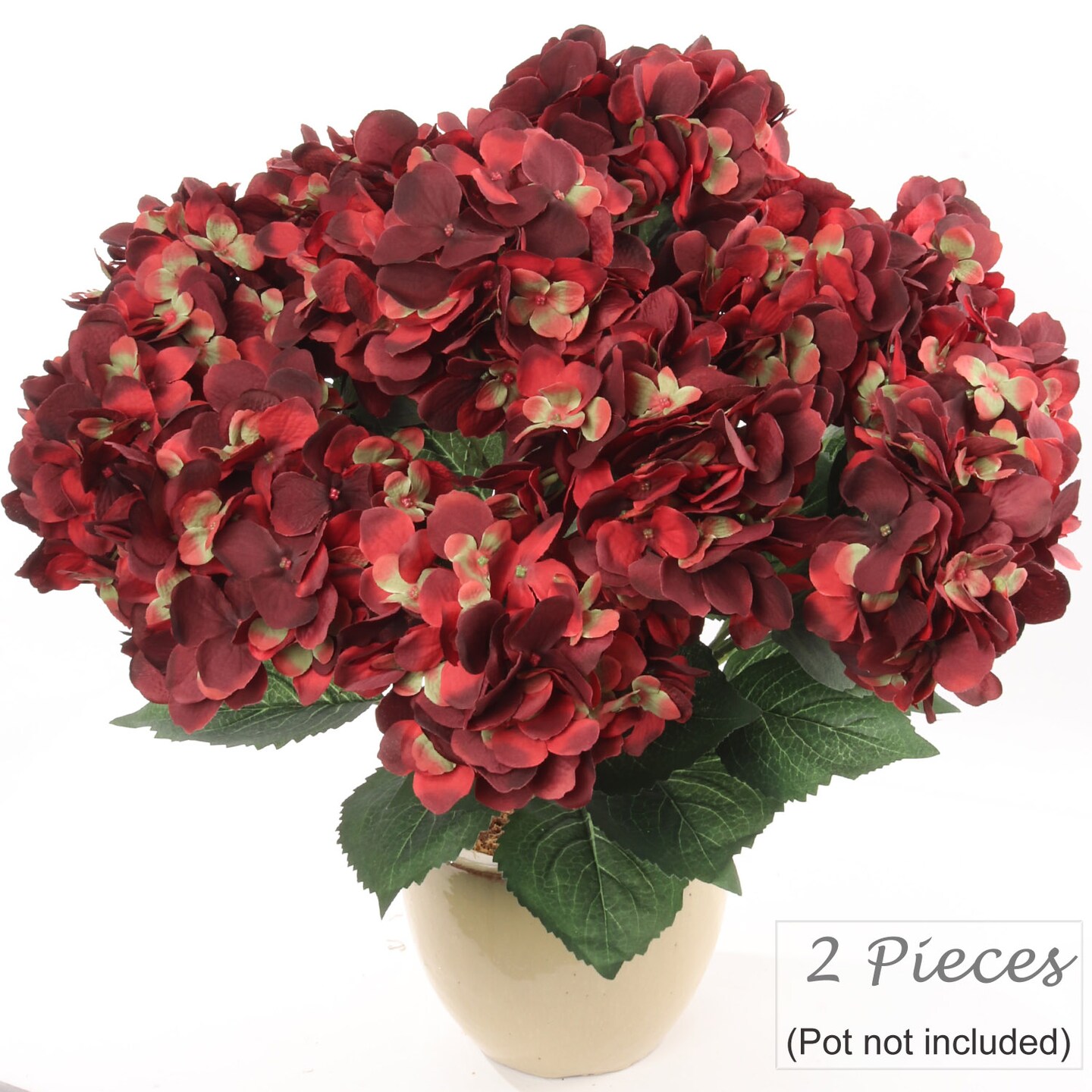 2-Pack: Burgundy Hydrangea Bush with 7 Silk Flowers, Floral Home by Artificial Flowers