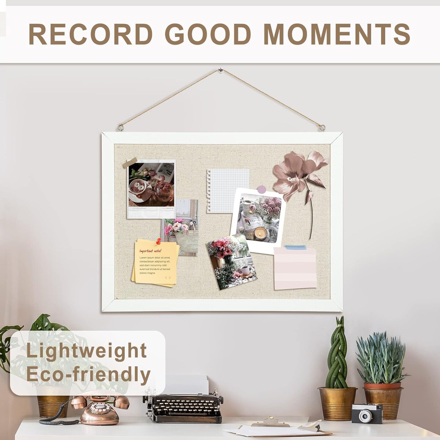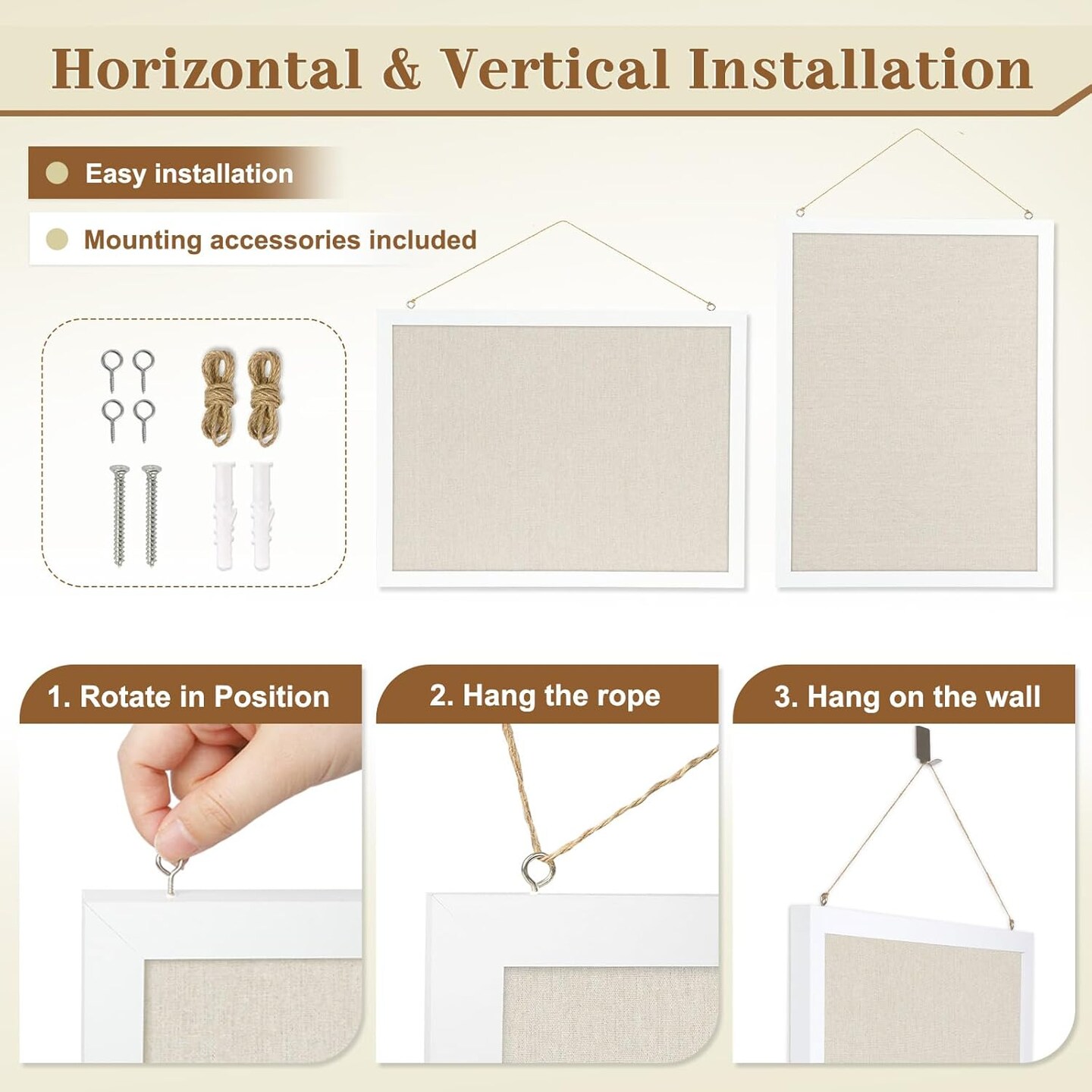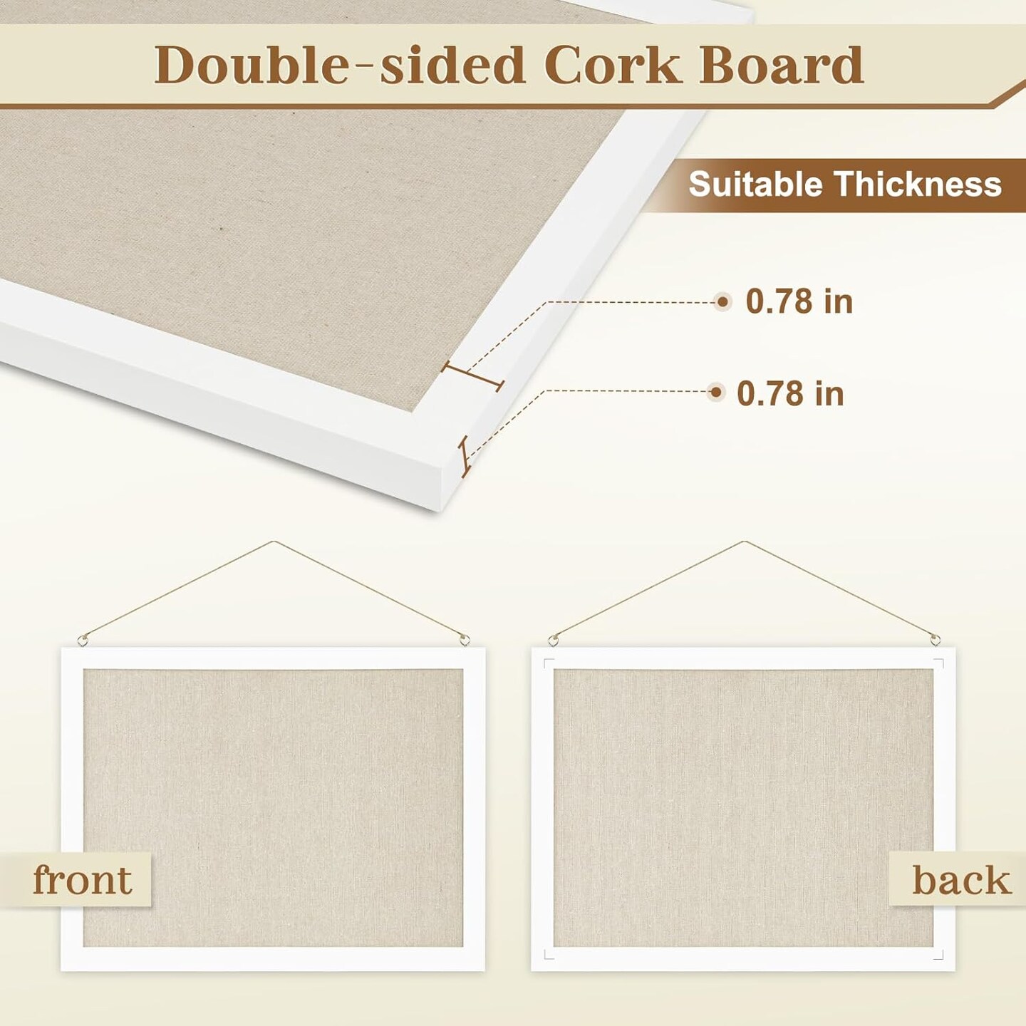 2-Pack Double-Sided Cork Board with Linen, Hanging Wood Framed Bulletin Board