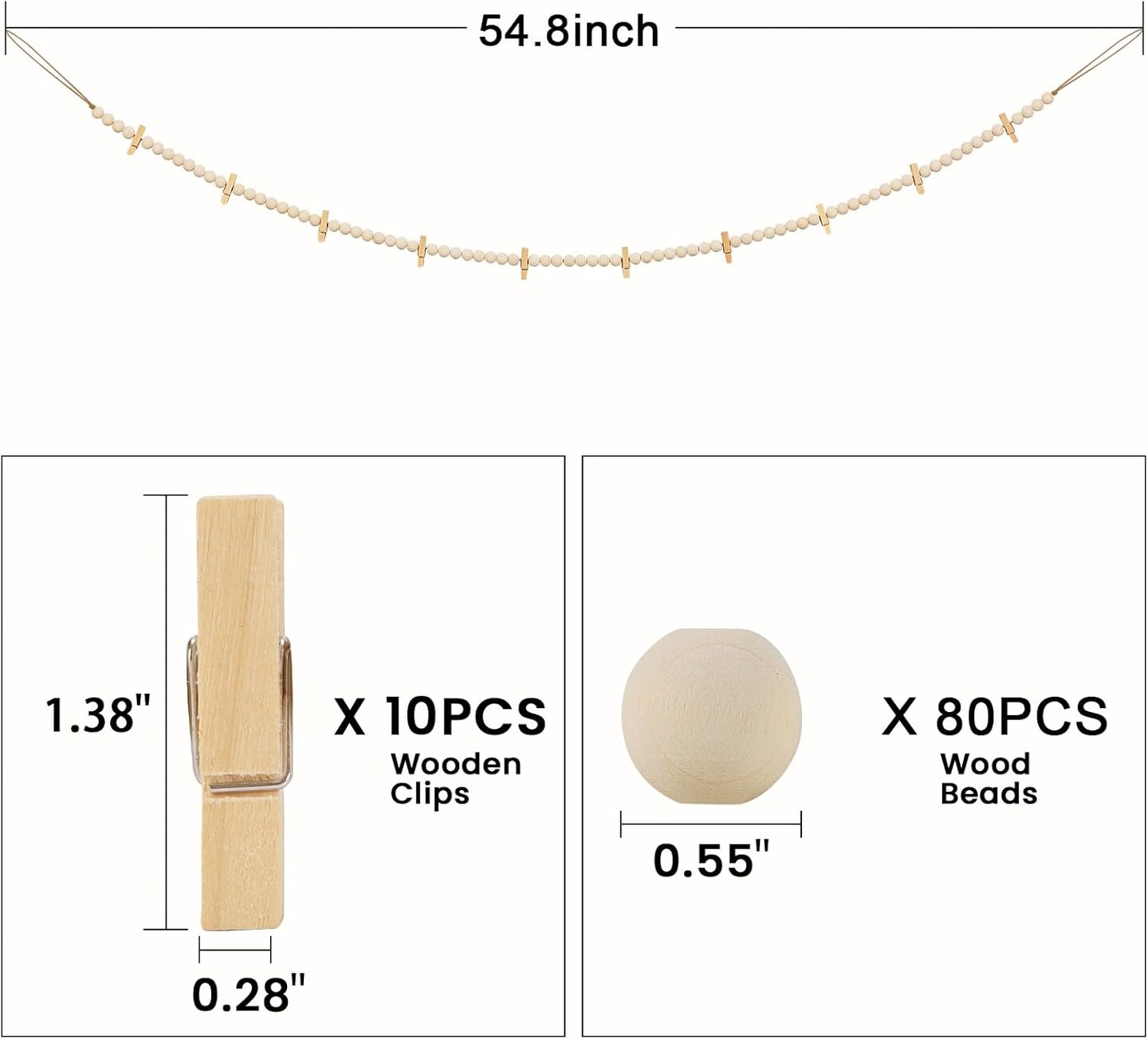 2-Pack Hanging Photo Display with Clips – Boho Wooden Bead Garland, Collage Picture Frame Wall Decor with 10 Clips for Bedroom, Dorm, Cubicle, or Teen Gifts