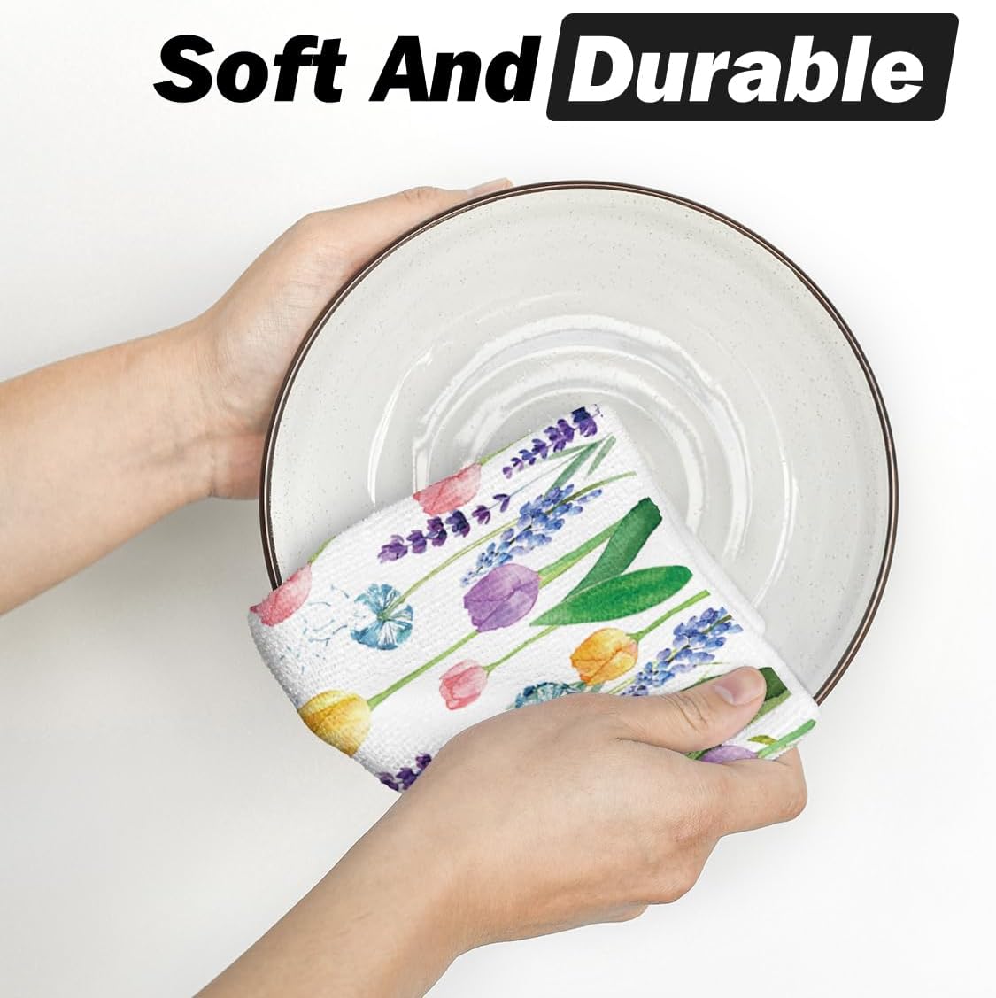 2-Pack Lavender Tulip Spring Kitchen Towels – 18x26" Seasonal Dish & Hand Towels for Summer