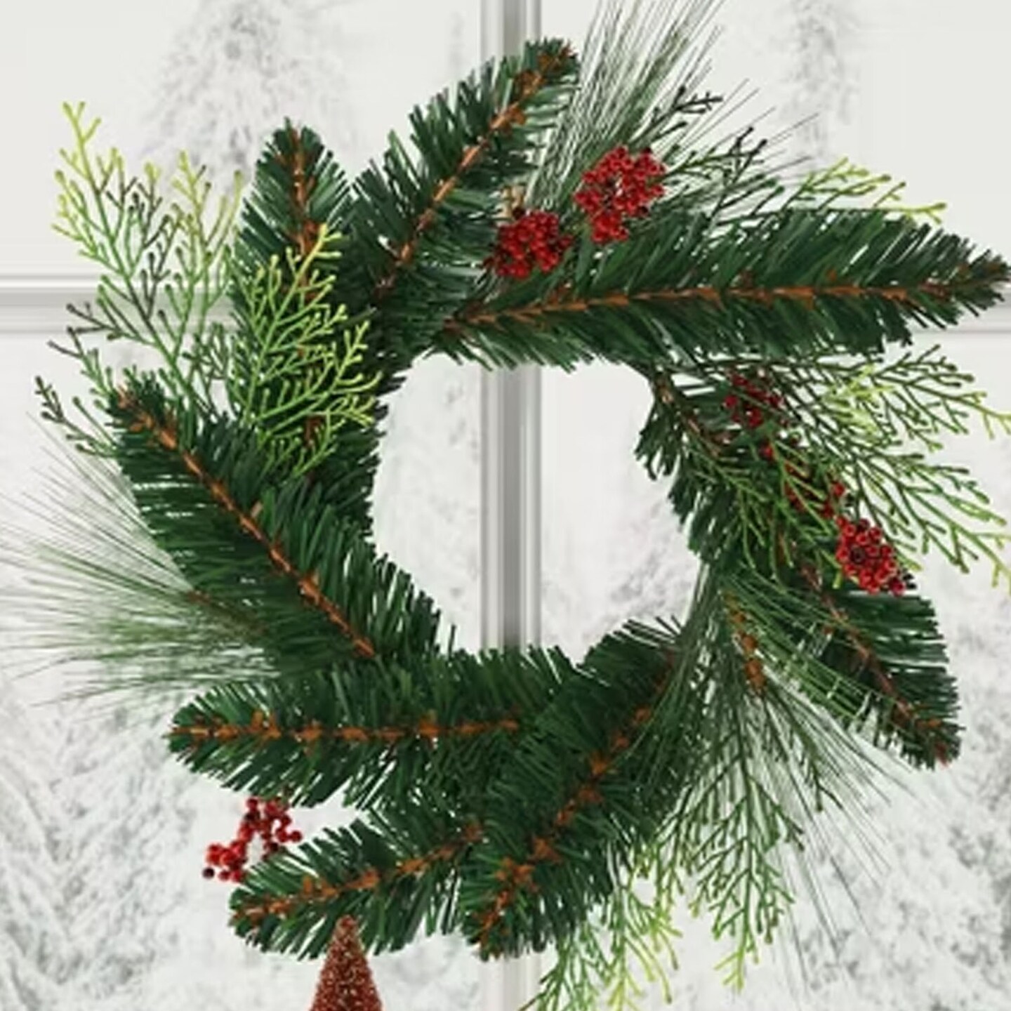 2-Pack Mini Christmas Wreaths with Red Berries Holiday Decorative Accent Set 14"