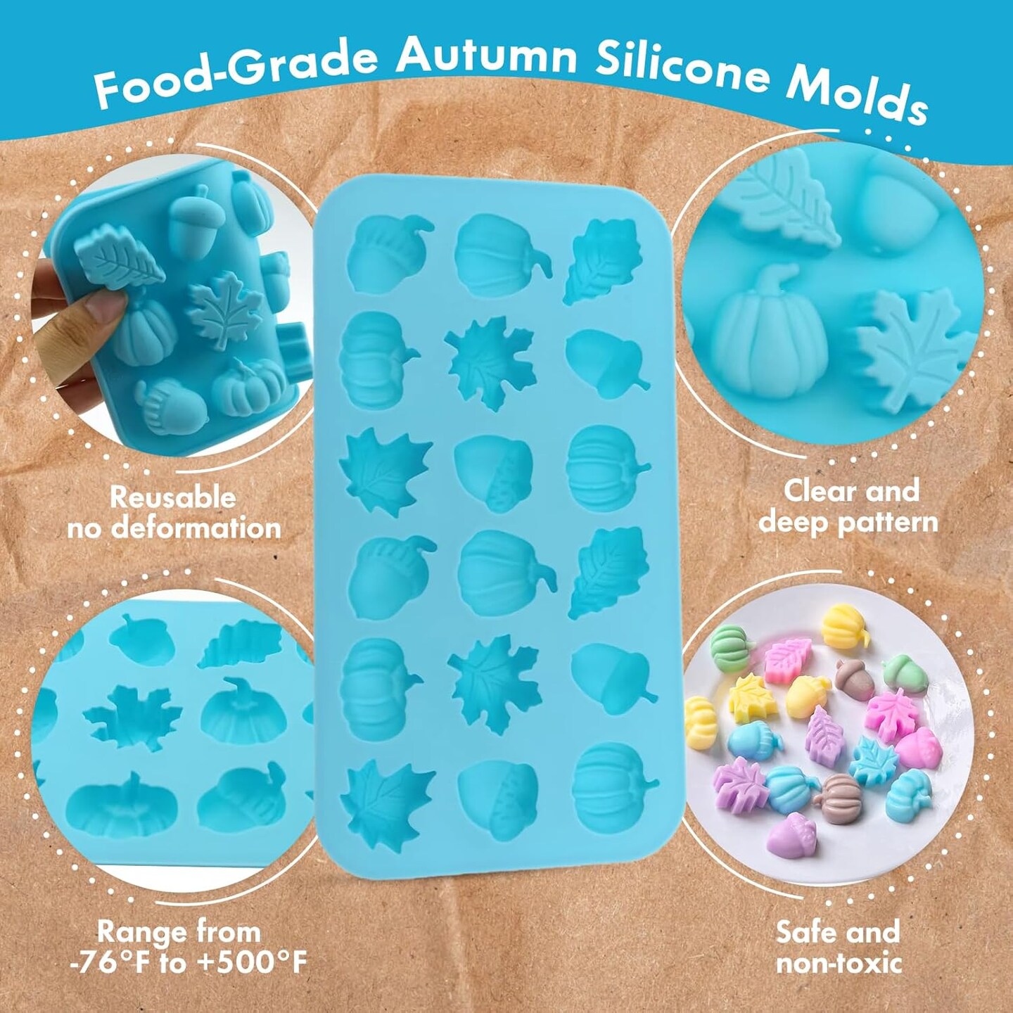2-Pack Mini Fall Molds - 18 Cavity Chocolate Baking Molds (Harvest Bites)