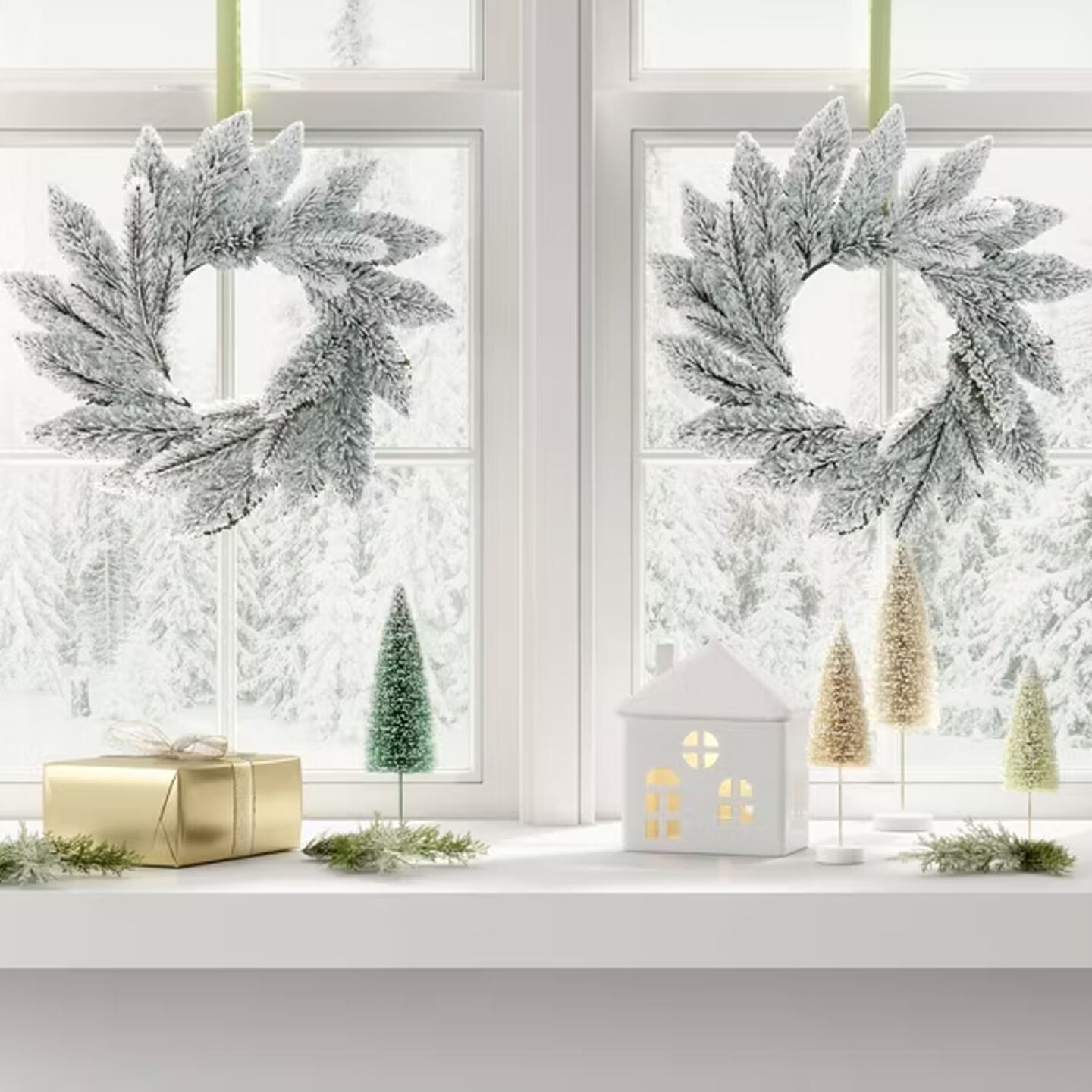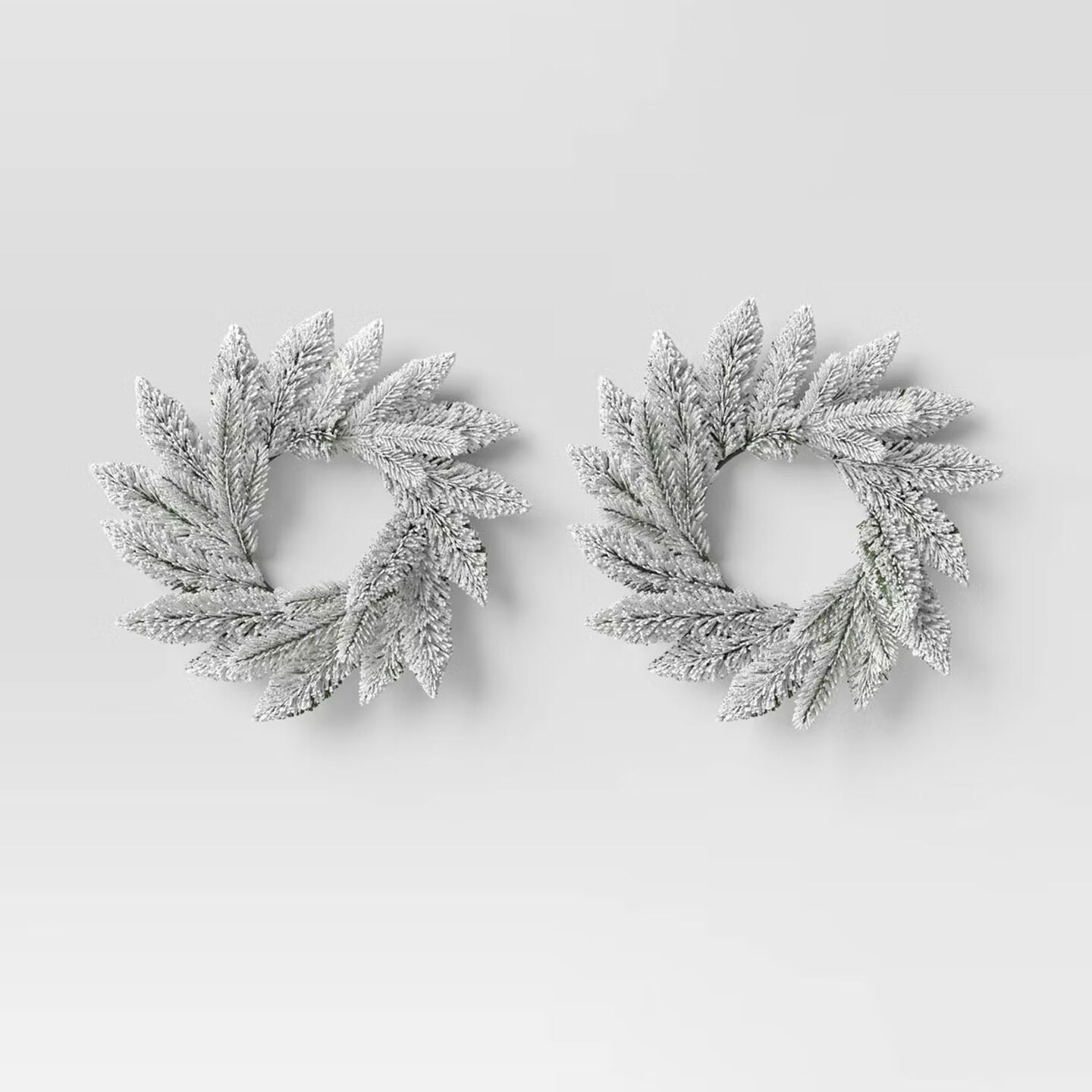 2-Pack Mini Flocked Christmas Wreaths Small Snowy Holiday Decor Set