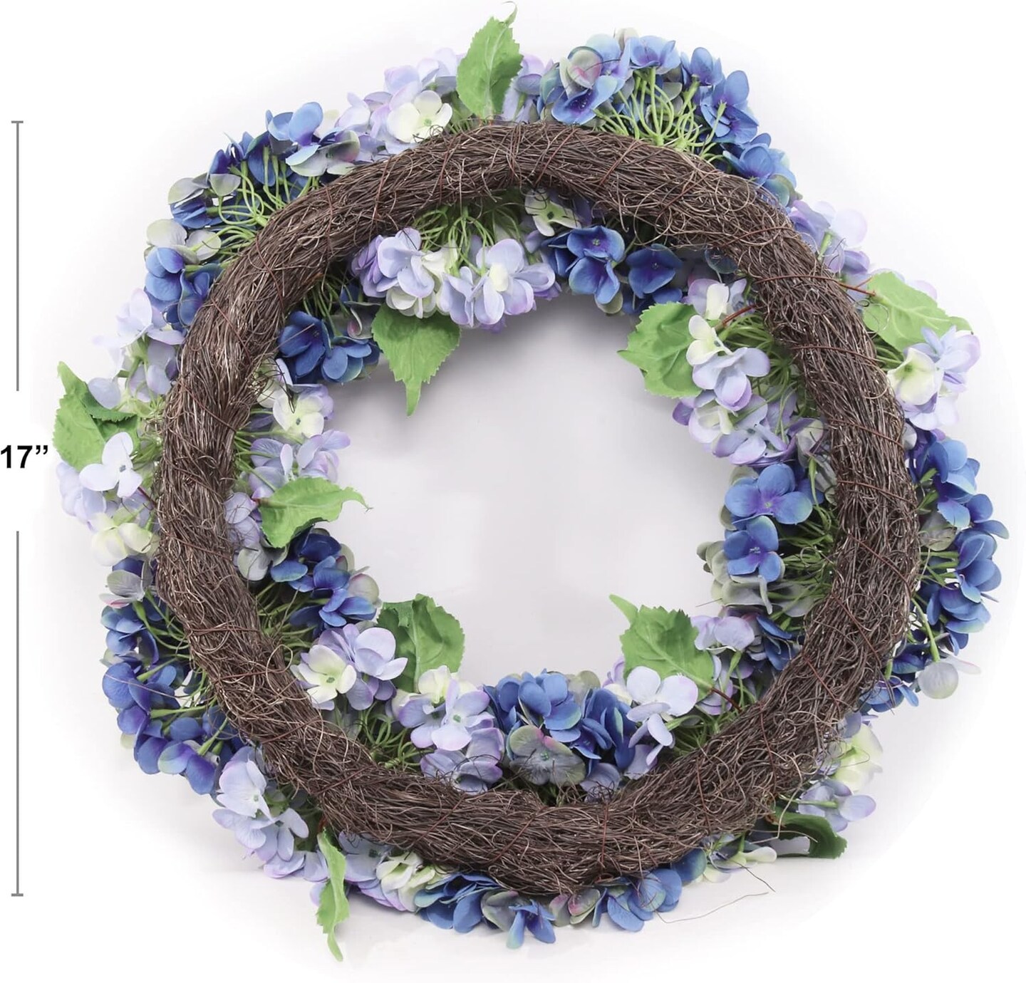2-Pack: Mixed Blue Hydrangea Wreath with Grapevine Ring, Floral Home by Artificial Flowers