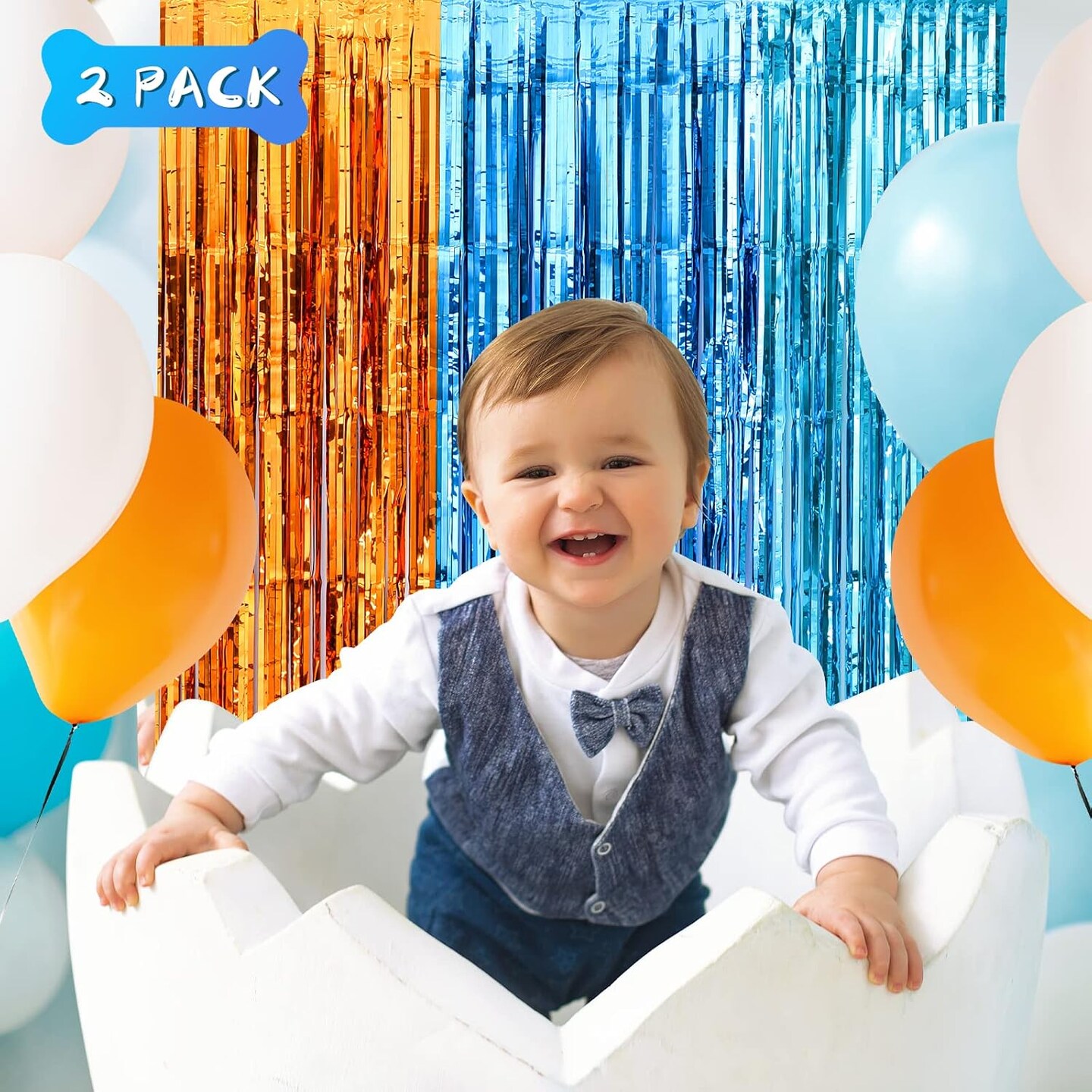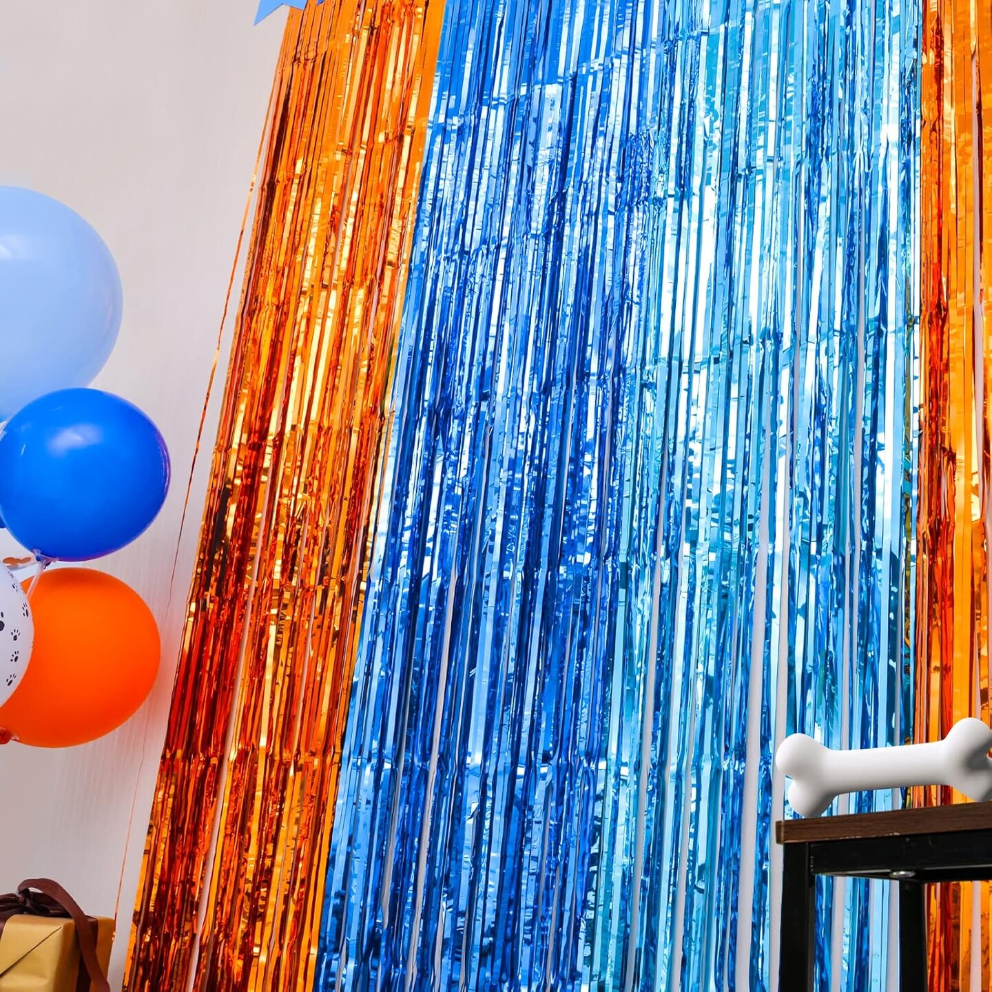 2-Pack Orange & Light Blue Foil Fringe Curtains 3.3x6.6ft Birthday Party Backdrop