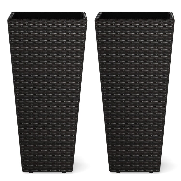2-Pack Outdoor Rattan Planters with Metal Frame and Drainage System for Patio Plants
