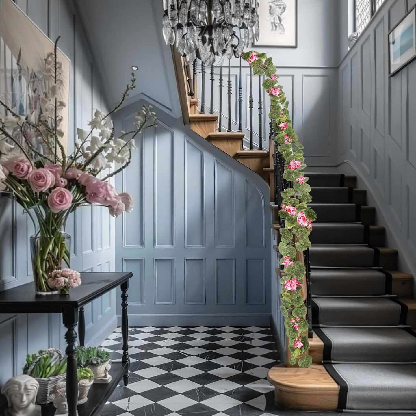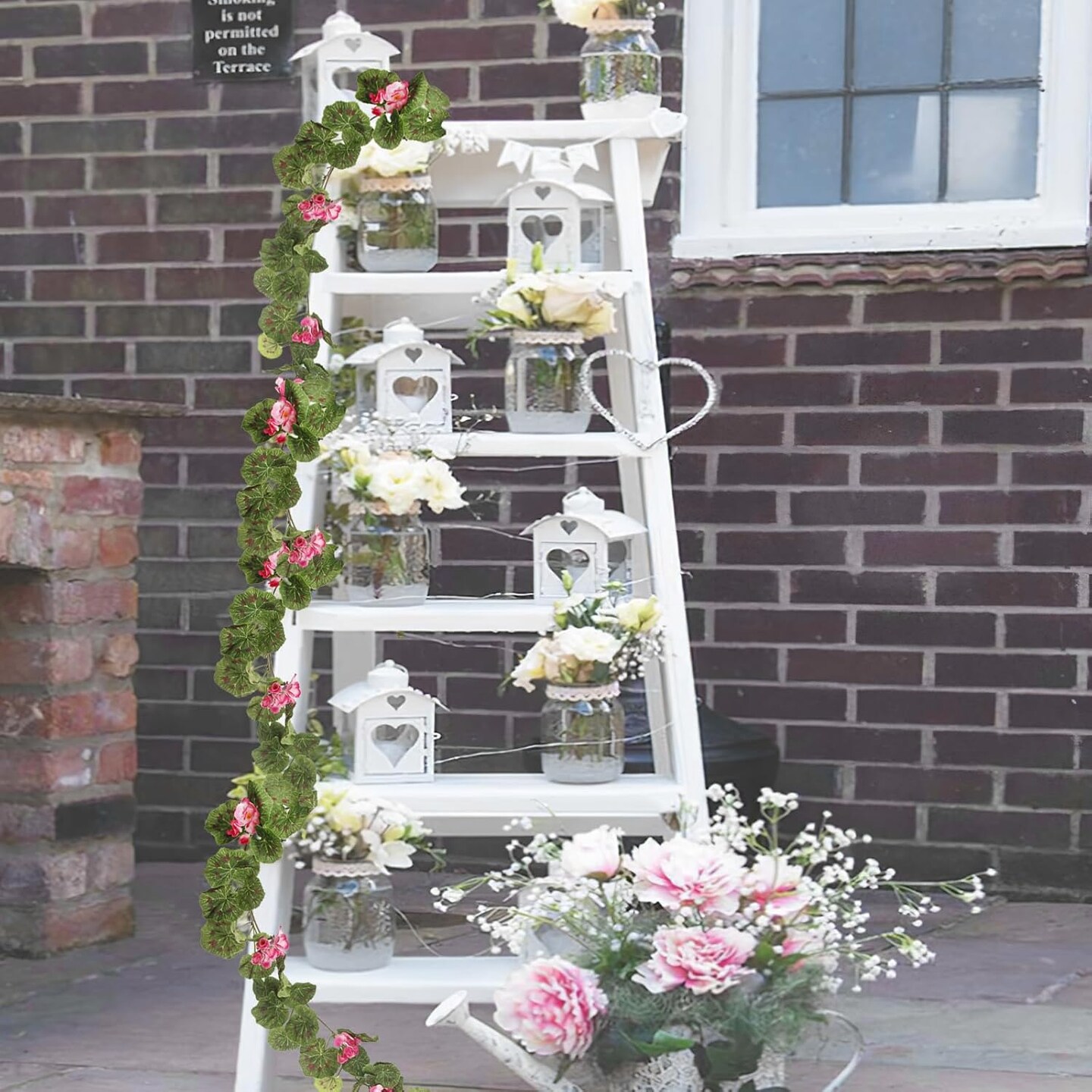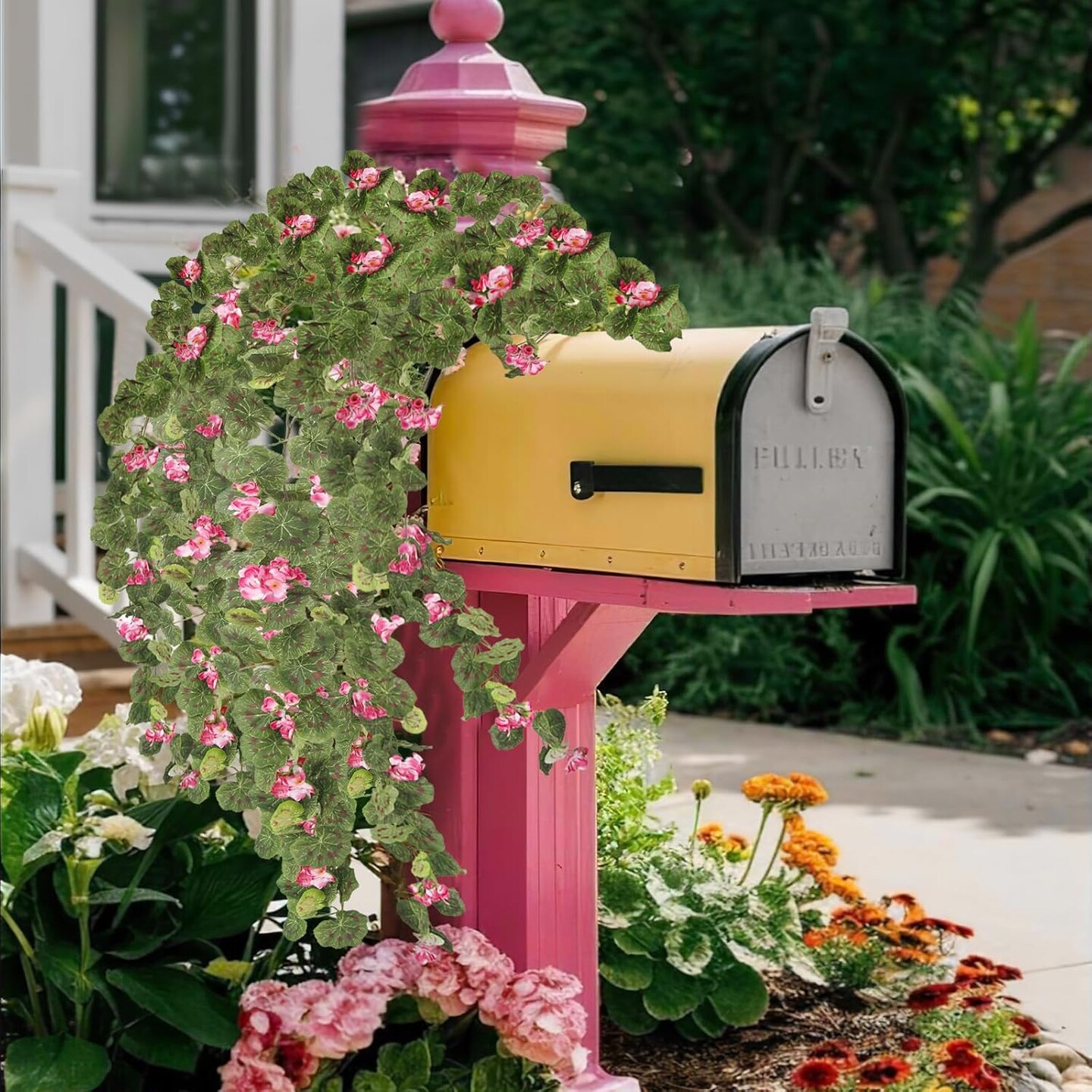 2-Pack Pink Geranium Flower Garlands, UV-Resistant for Outdoor Decor