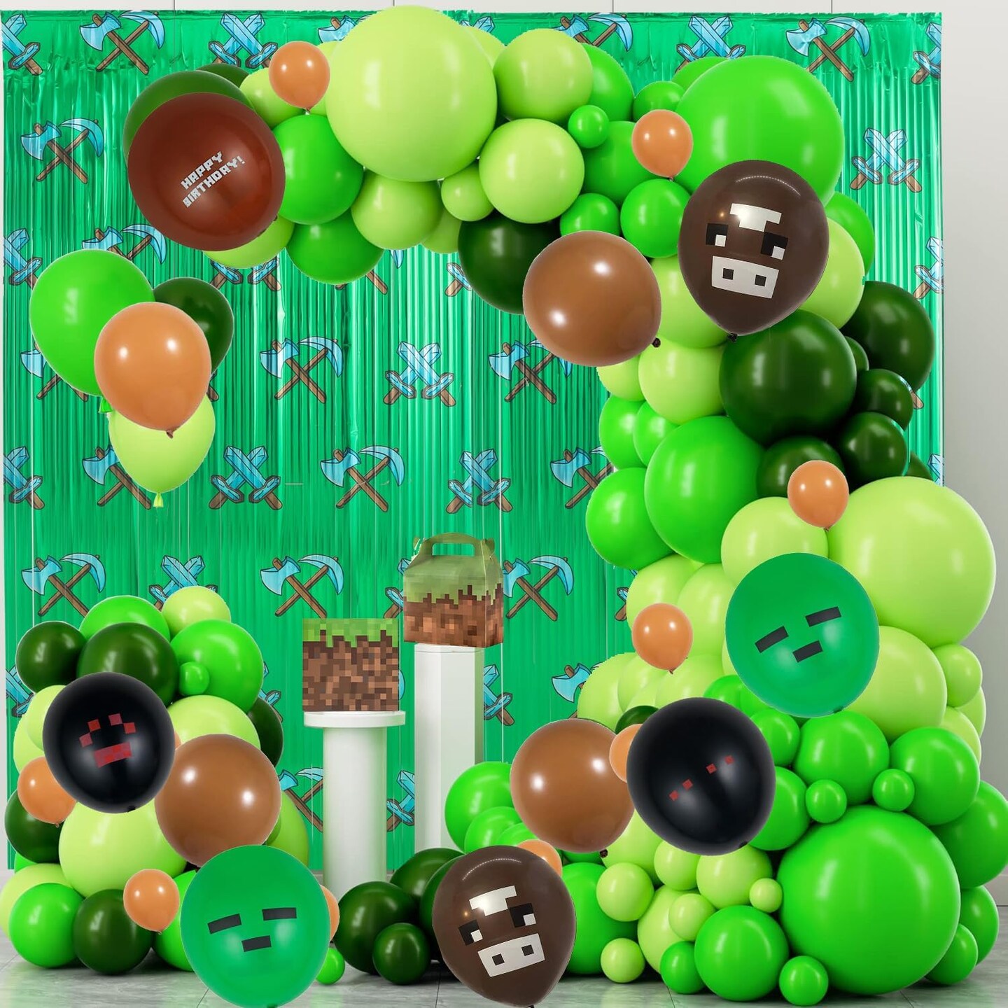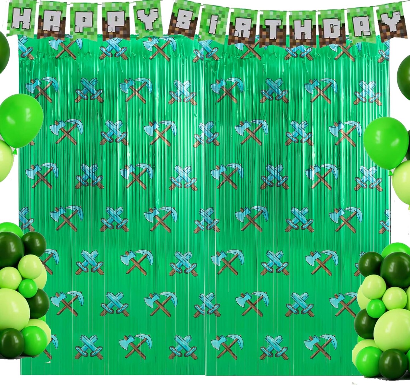 2-Pack Pixel-Themed Beaded Foil Fringe Curtains 6.6x3.3ft Party Backdrop Decorations