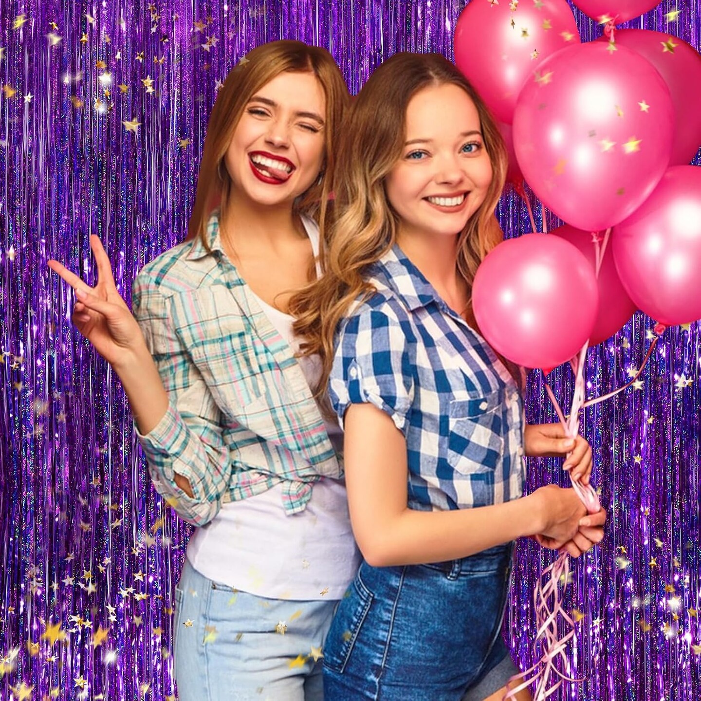 2-Pack Purple Metallic Foil Fringe Curtains 3.3x8.3ft Party Backdrop Decorations