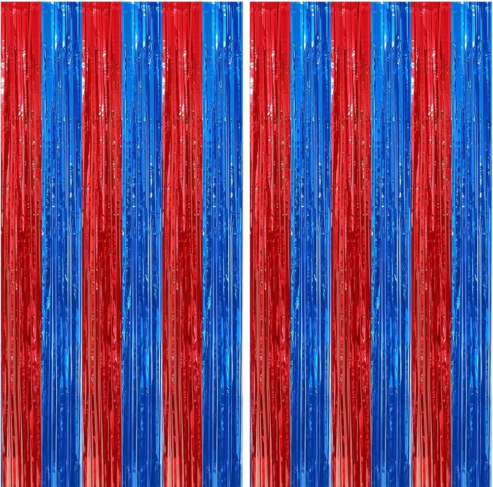 2-Pack Red & Blue Foil Fringe Curtains 3.3x6.6ft Party Backdrop Decorations