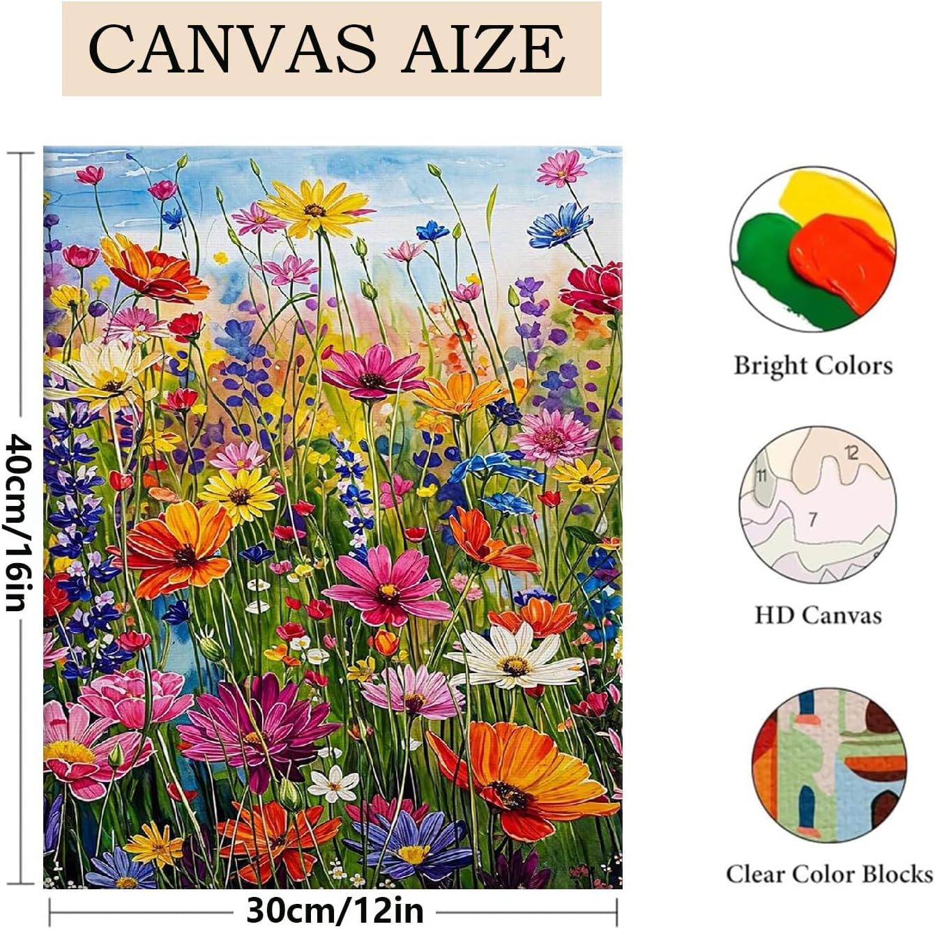 2-Pack Wild Flower Paint by Numbers Kit for Adults – Bohemian DIY Canvas Painting, Diamond Dot Art, 12x16 Inch Home Wall Decor