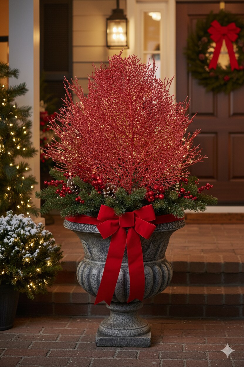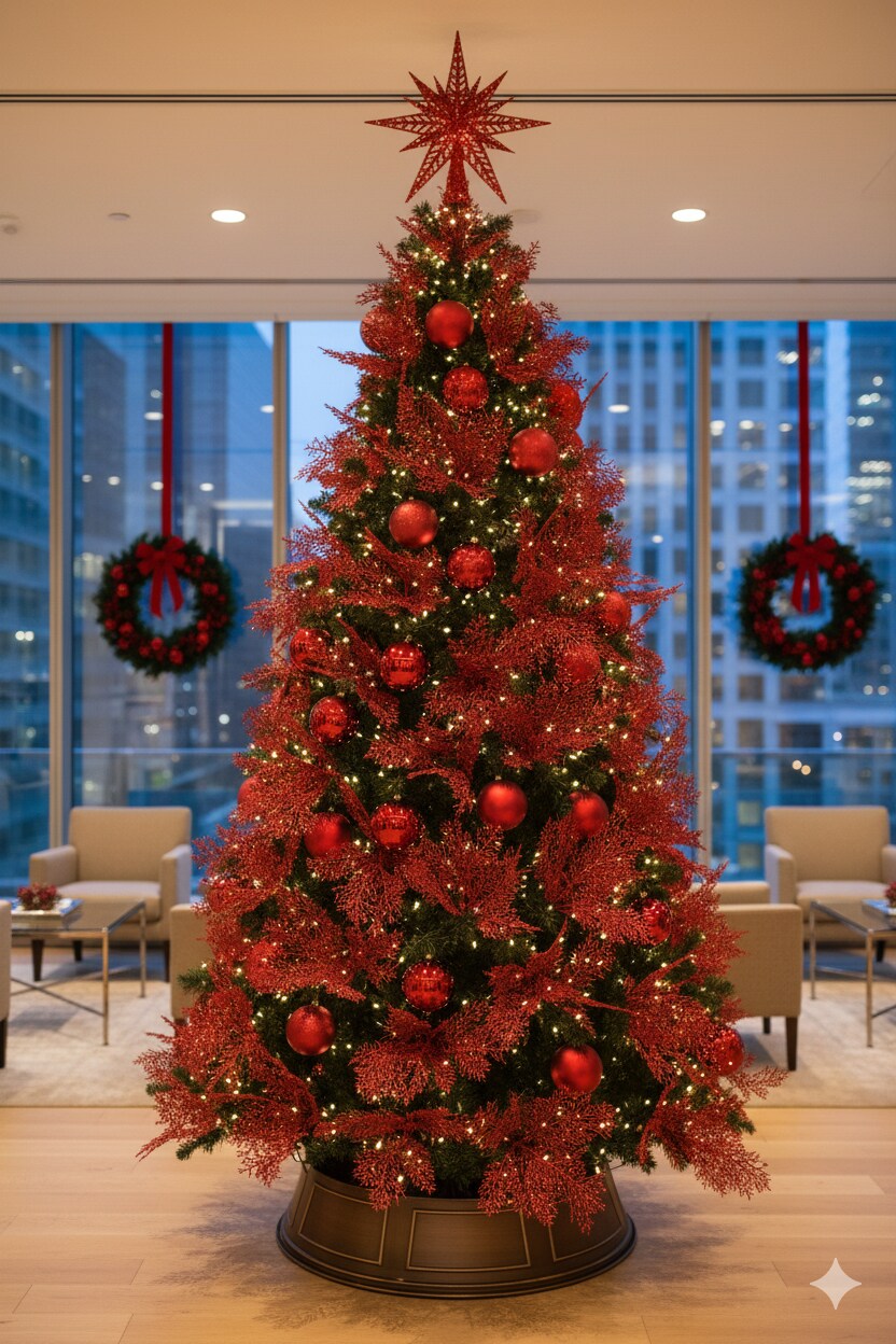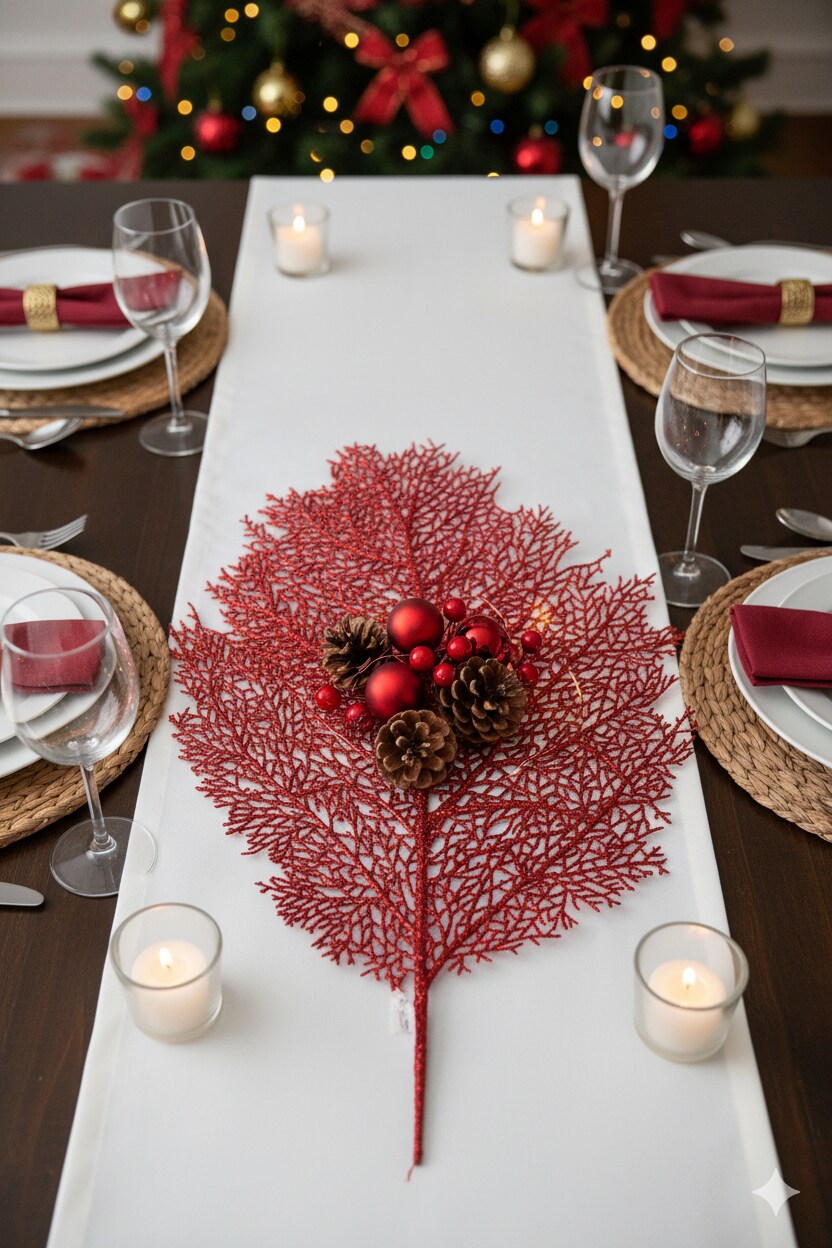 2PC 25-Inch Red Glitter Mesh Leaf, Christmas Accent, Perfect for Trees, Wreaths, Garland Displays
