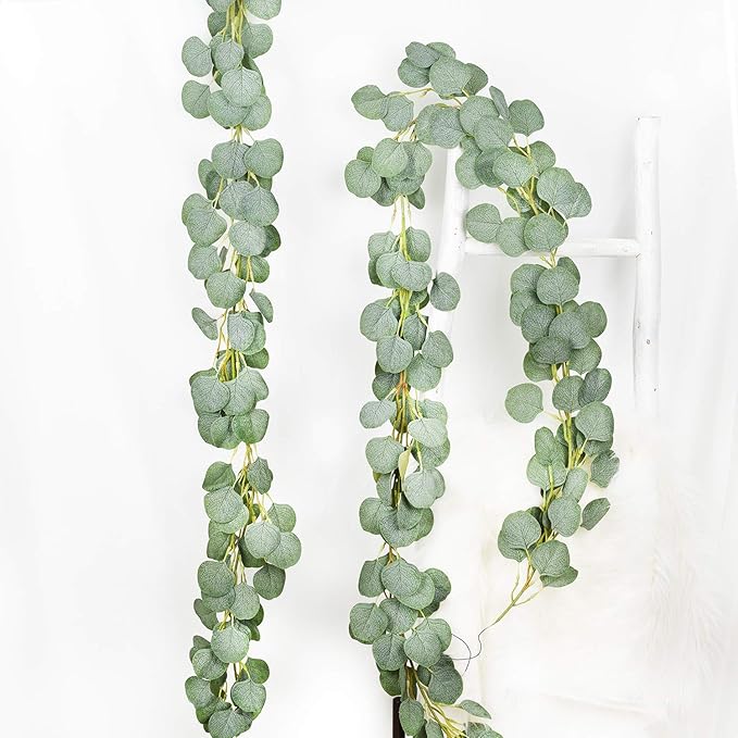 2pc Artificial Eucalyptus Garland – 6.1FT Faux Silk Eucalyptus Vines for Wedding Arch, Table Decor, Backdrop, and Home Decoration (Green)