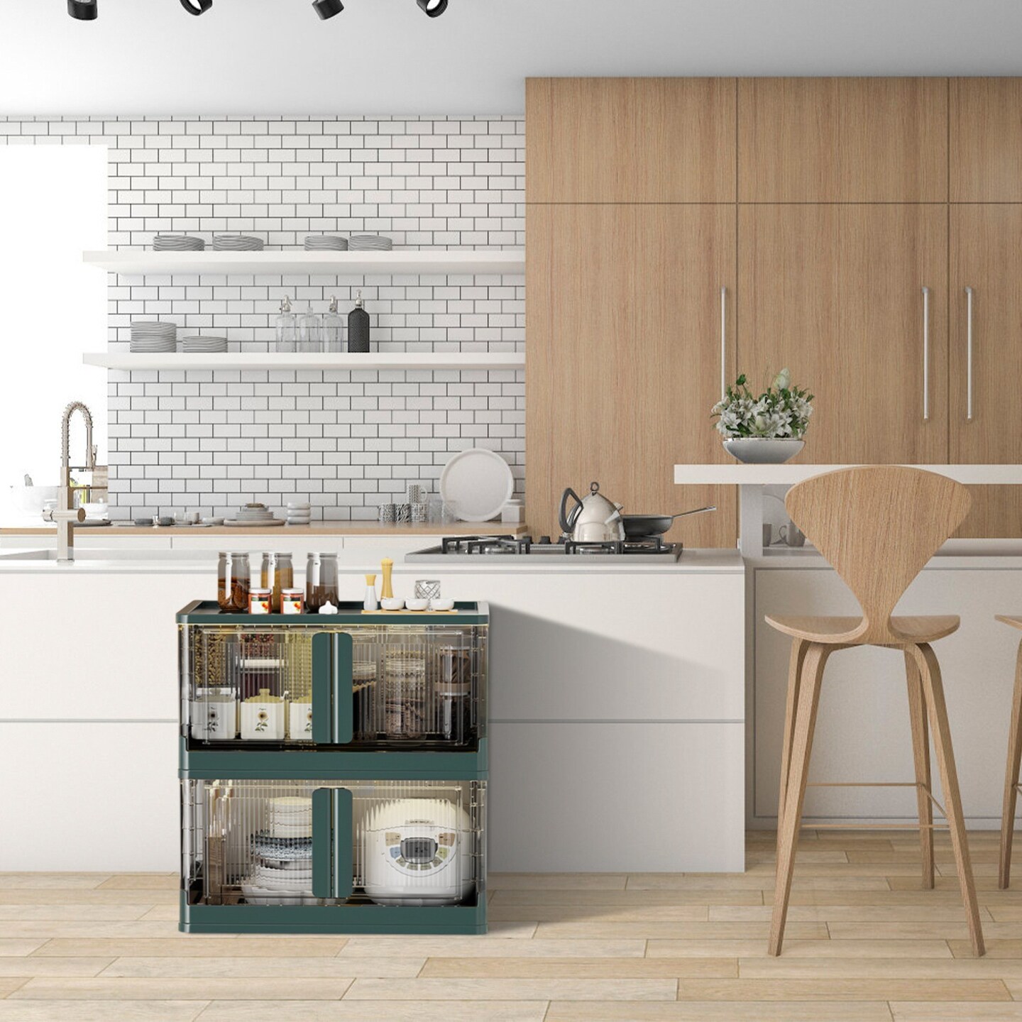 2Pcs 32L Foldable Storage Bins with Lid Collapsible Stackable Closet Organizer Containers with Front Door Lock 4Pcs Wheels