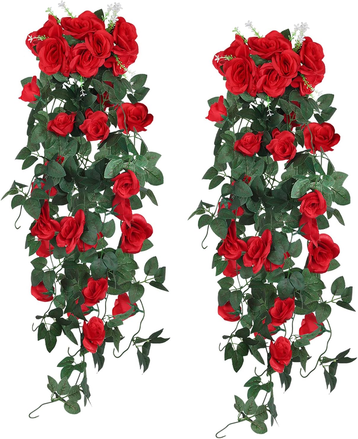 2PCS 3.3Ft Artificial Hanging Rose Vines – Red Flower Garland for Home, Garden, Wedding, Indoor & Outdoor Decor, Valentine’s Day Gift