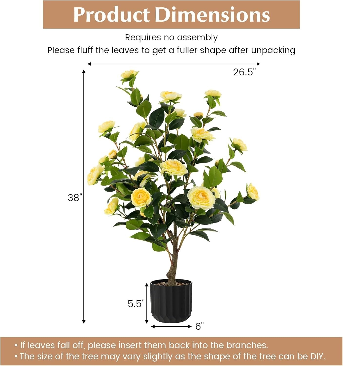 2pcs 38" Artificial Camellia Tree Flower Plant in Yellow Cement