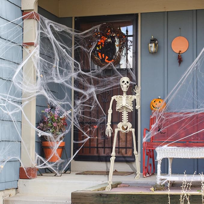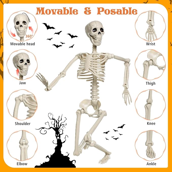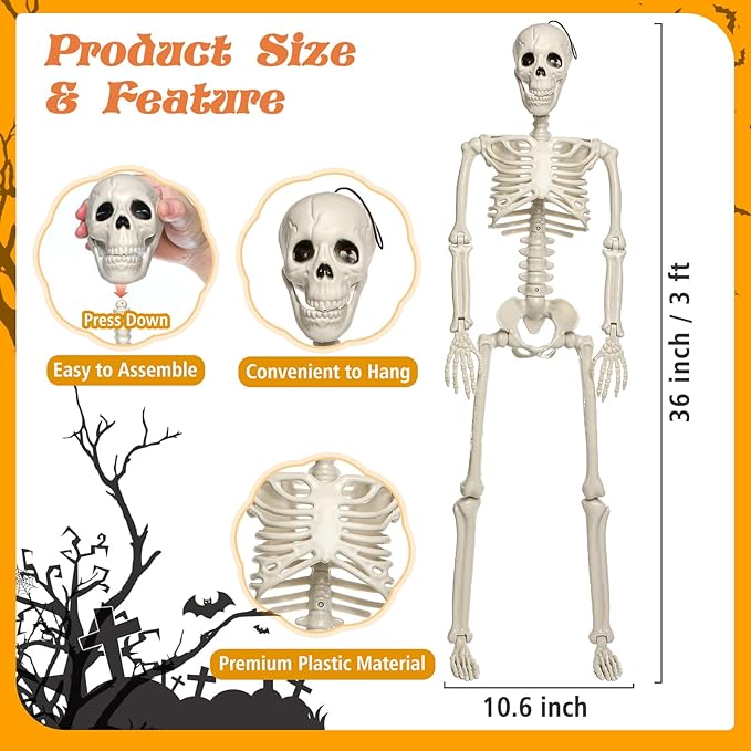 2PCS 3FT Halloween Skeleton Decorations, 36" Full Body Halloween Posable Joints Skeleton, Plastic Realistic Human Bones Prop for Halloween Party, Yard Lawn Haunted House Indoor Outdoor Decoration