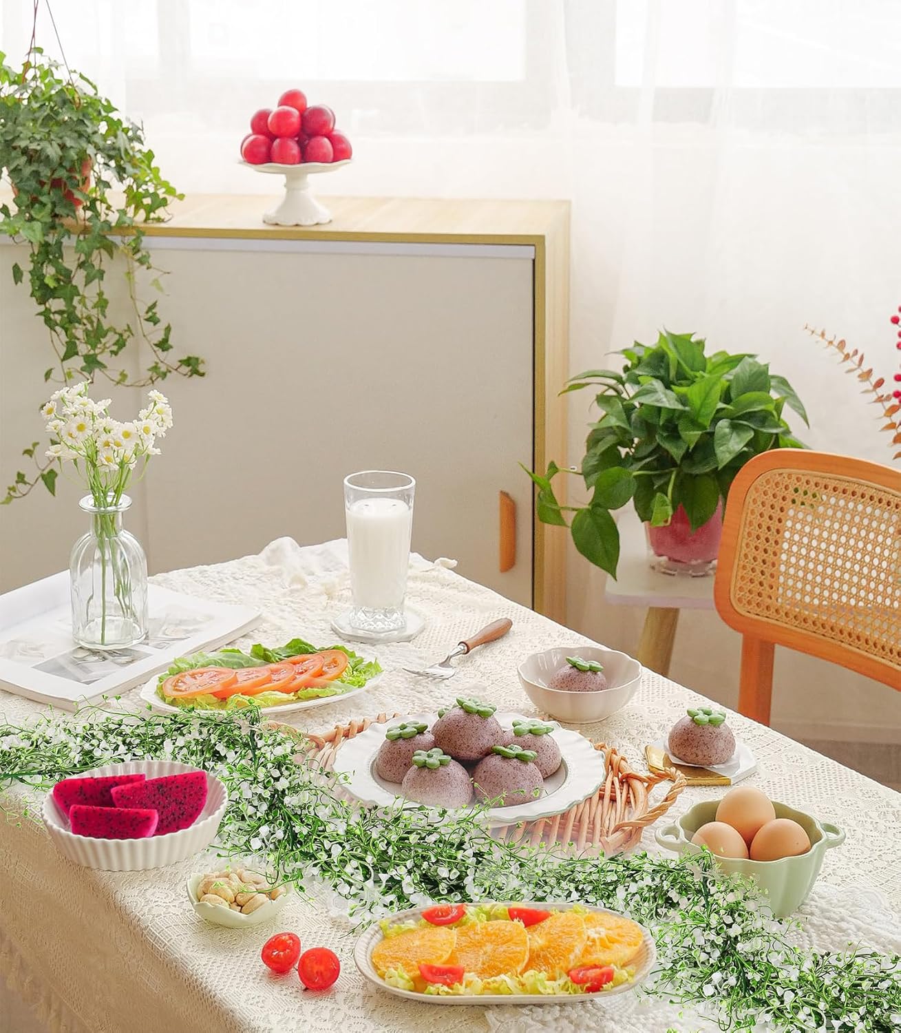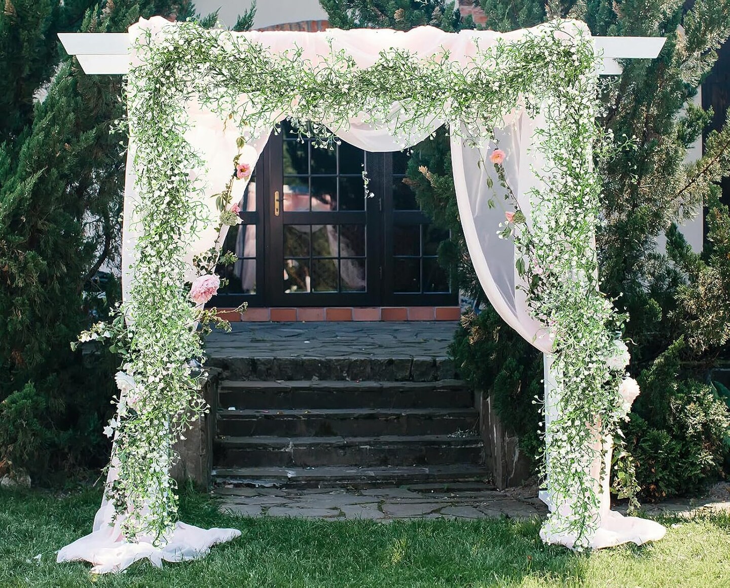 2Pcs 5.6Ft Artificial Greenery Garland (White, Hanging Garland)