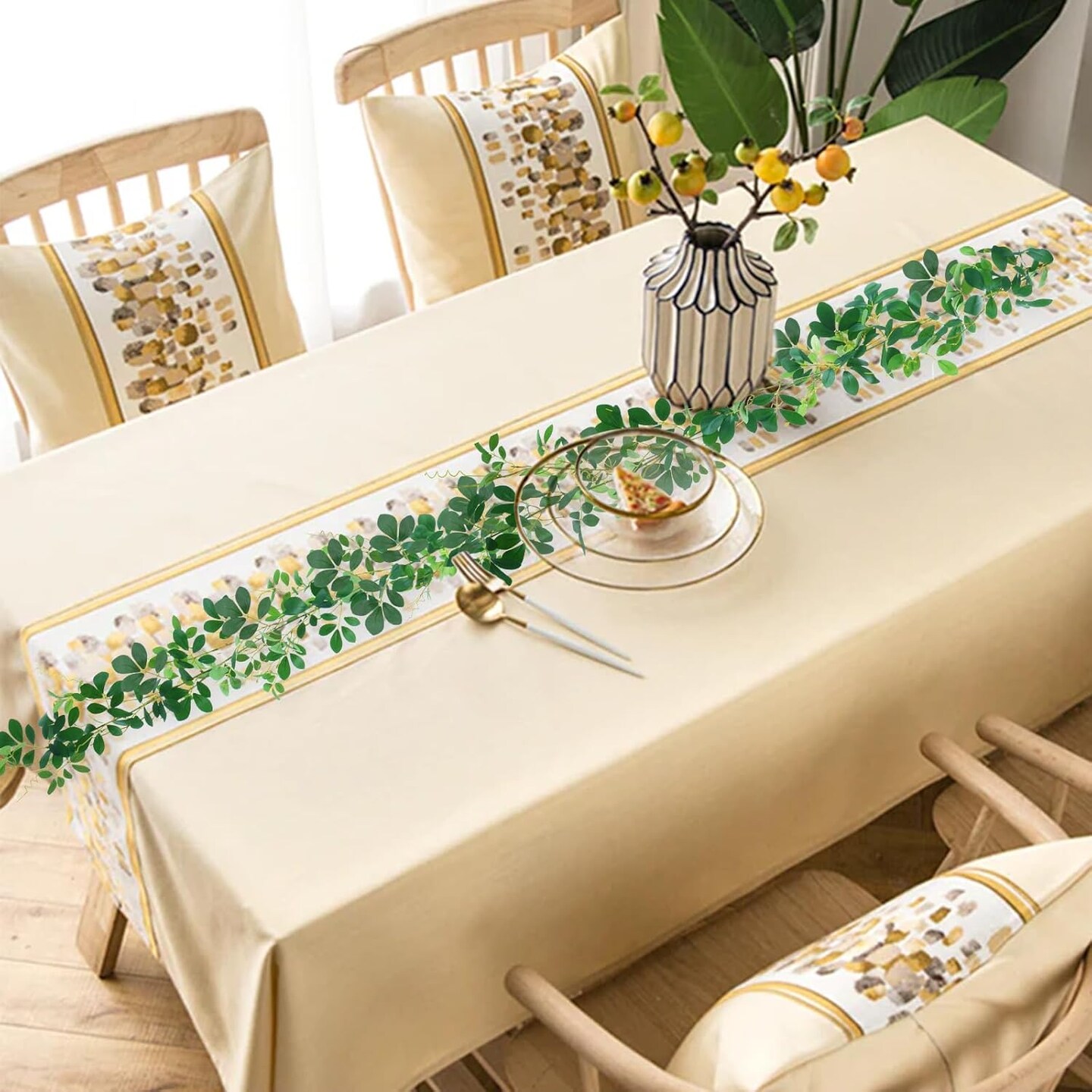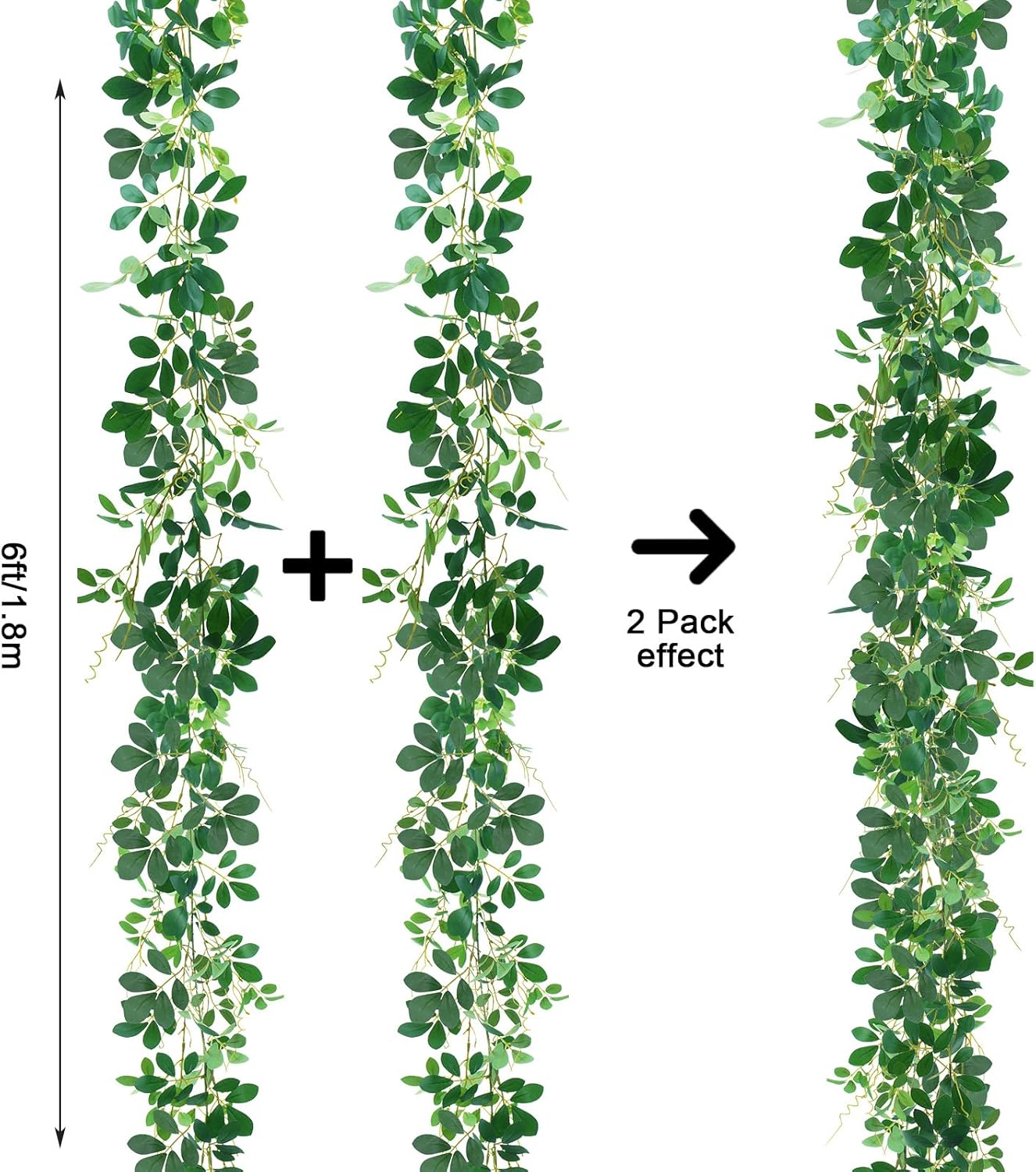 2Pcs 6FT Artificial Greenery Garland Hanging Decor, Seucalyptus Garland Fake Ivy for Home Decoration Bedroom Kitchen Porch Party Wedding Arch Wedding Centerpieces for Tables Wreath