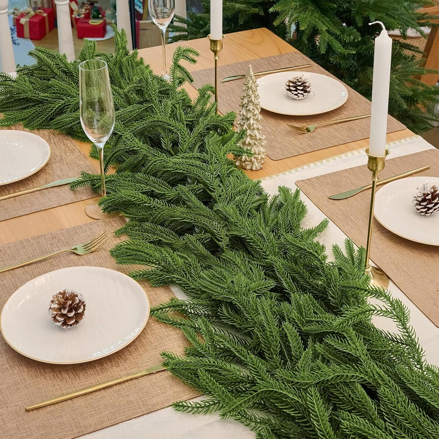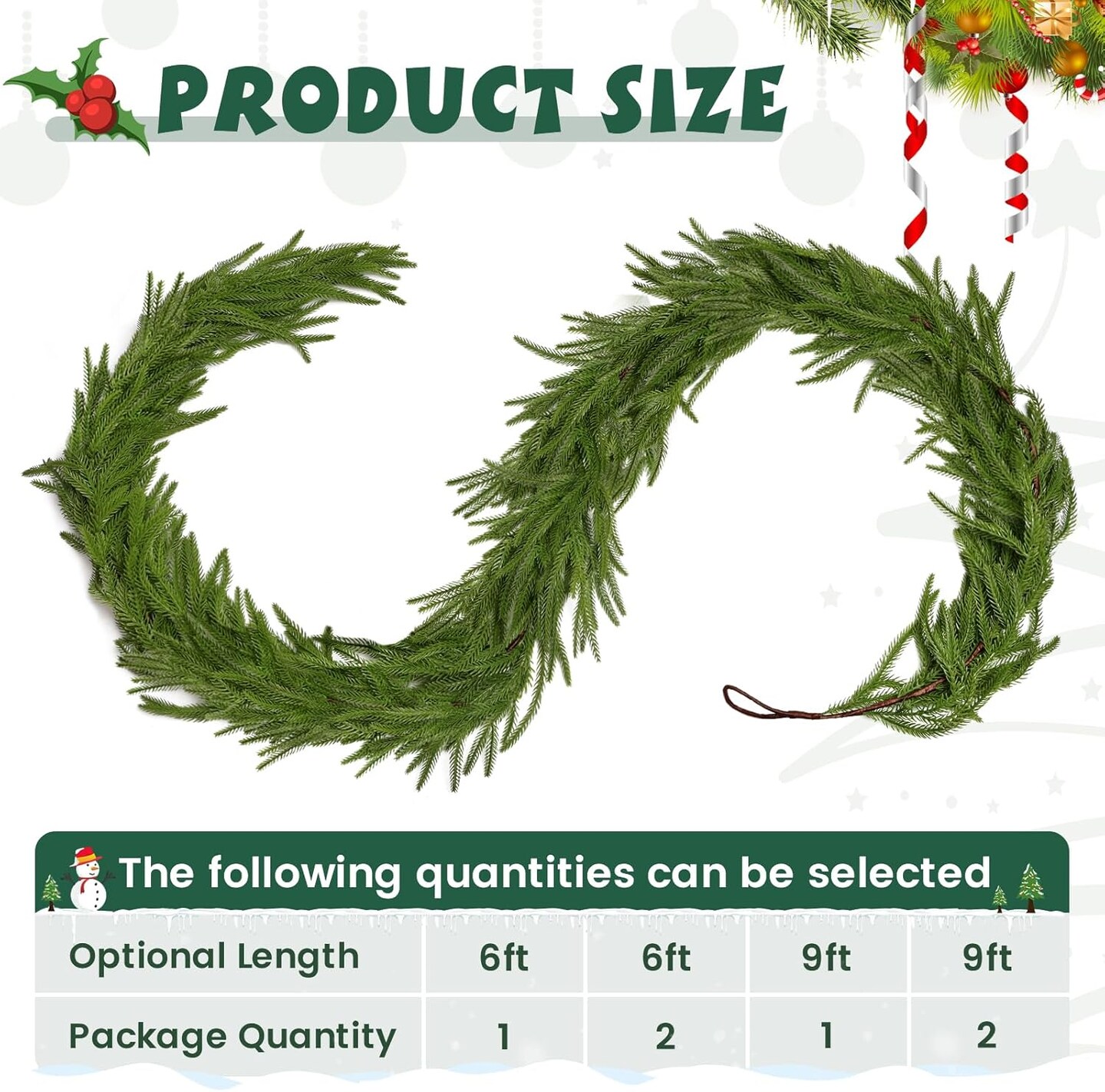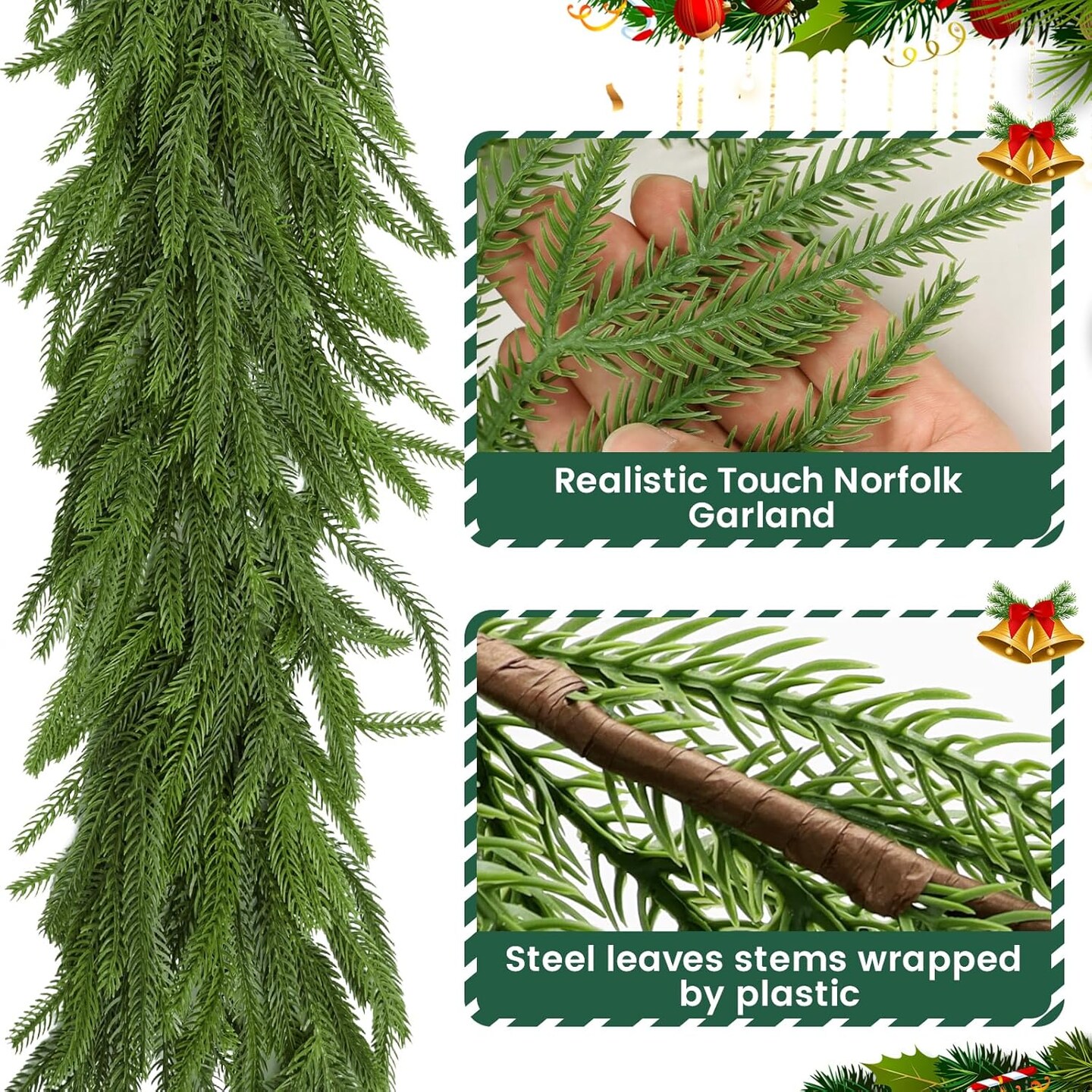 2Pcs 6FT Christmas Norfolk Pine Garland