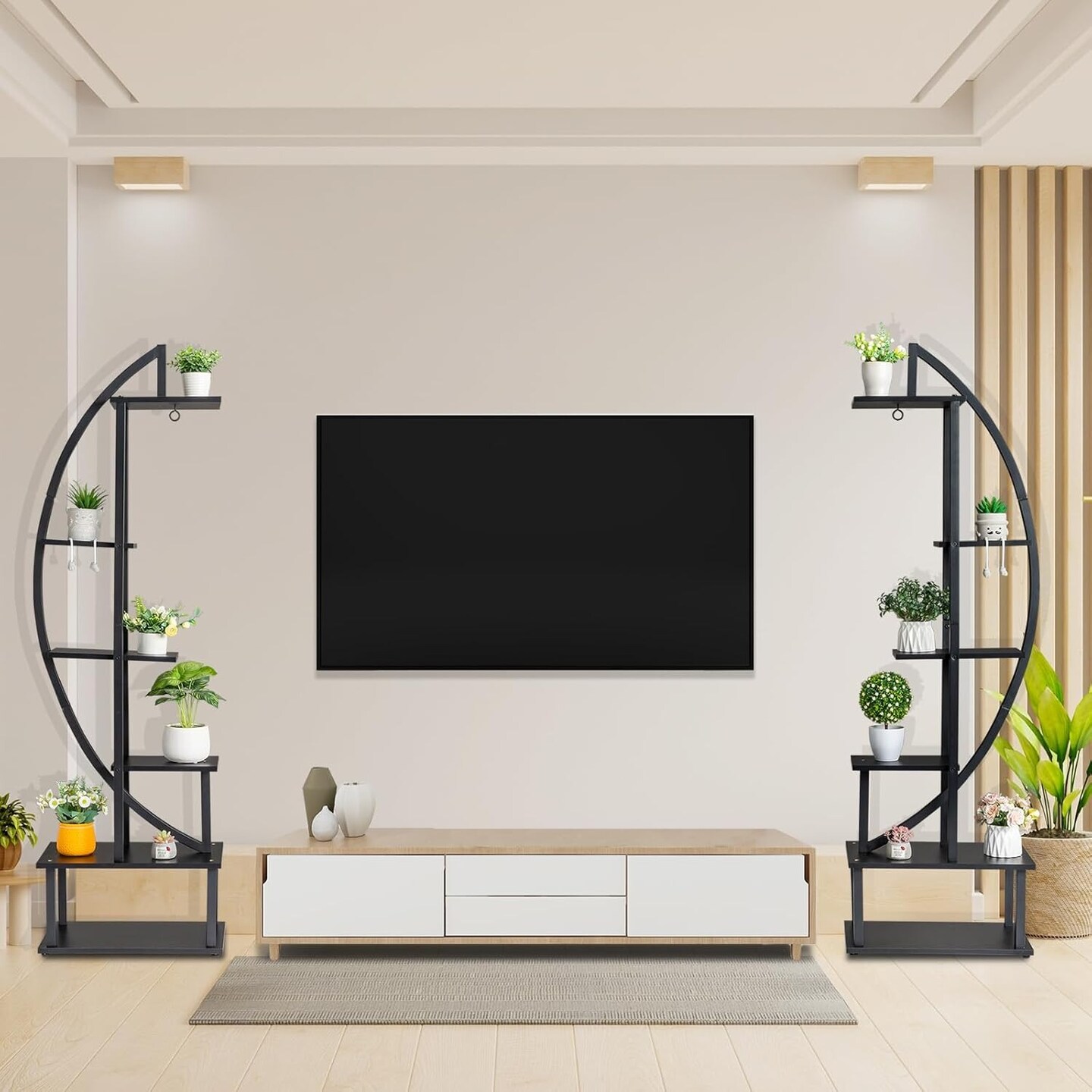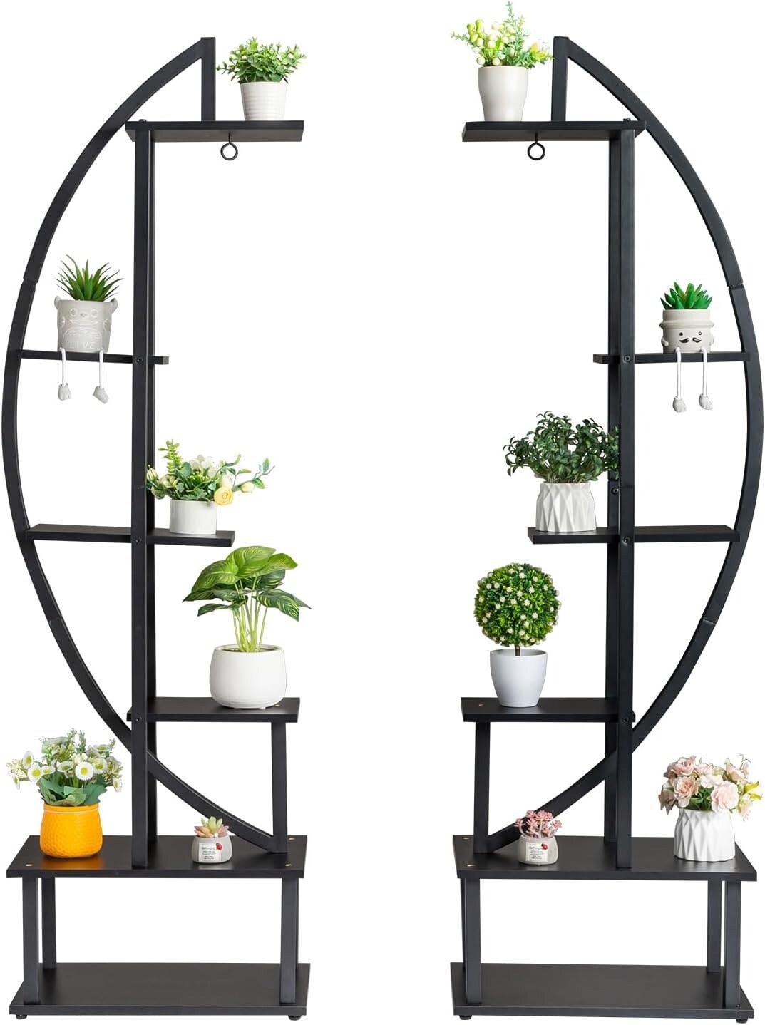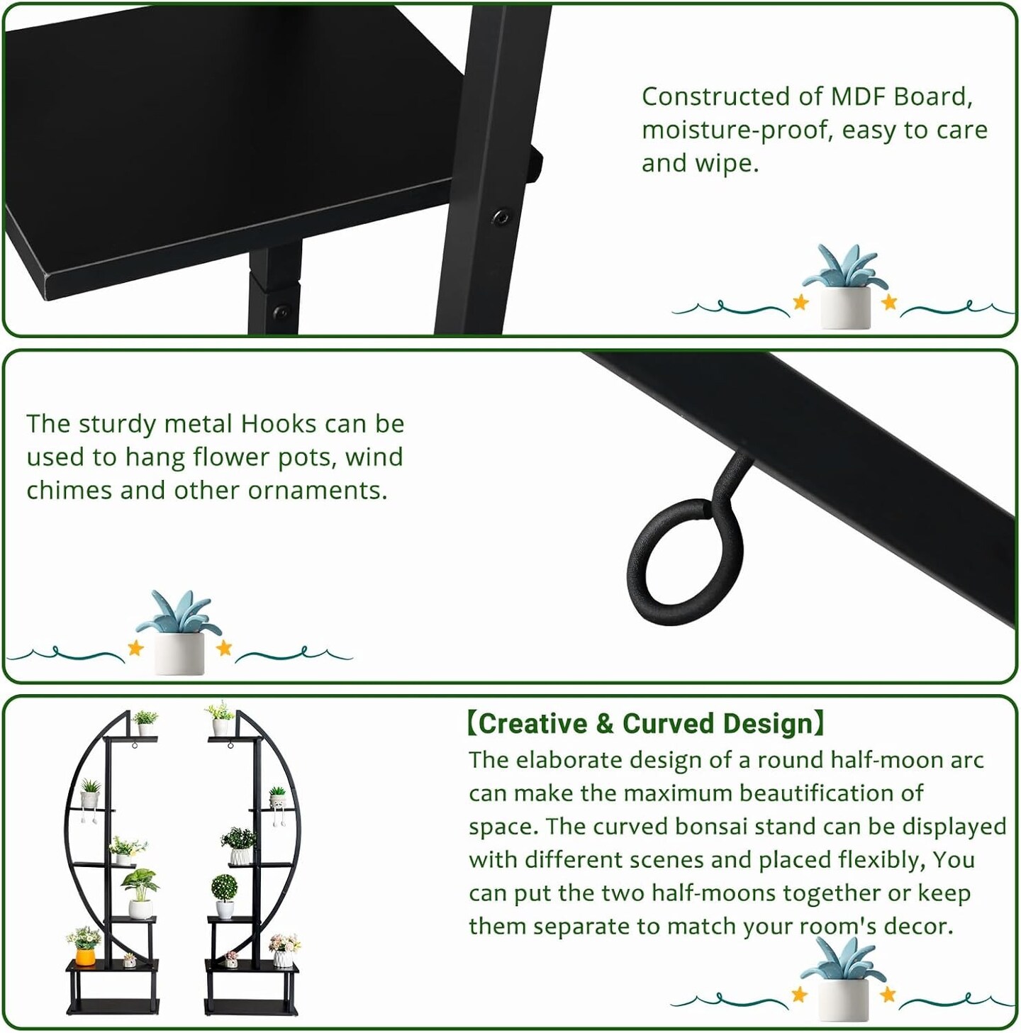 2Pcs 6-Tier Black Half-Moon Ironwood Plant Stands