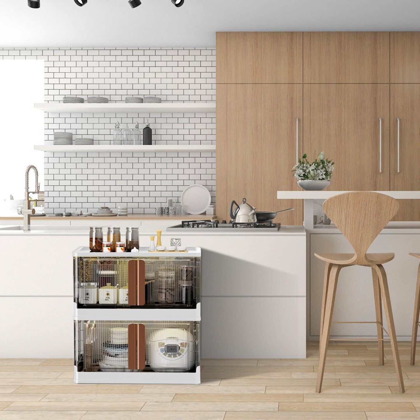 2Pcs 72L Foldable Storage Bins with Lid Collapsible Stackable Closet Organizer Containers with Front Door Lock 4Pcs Wheels