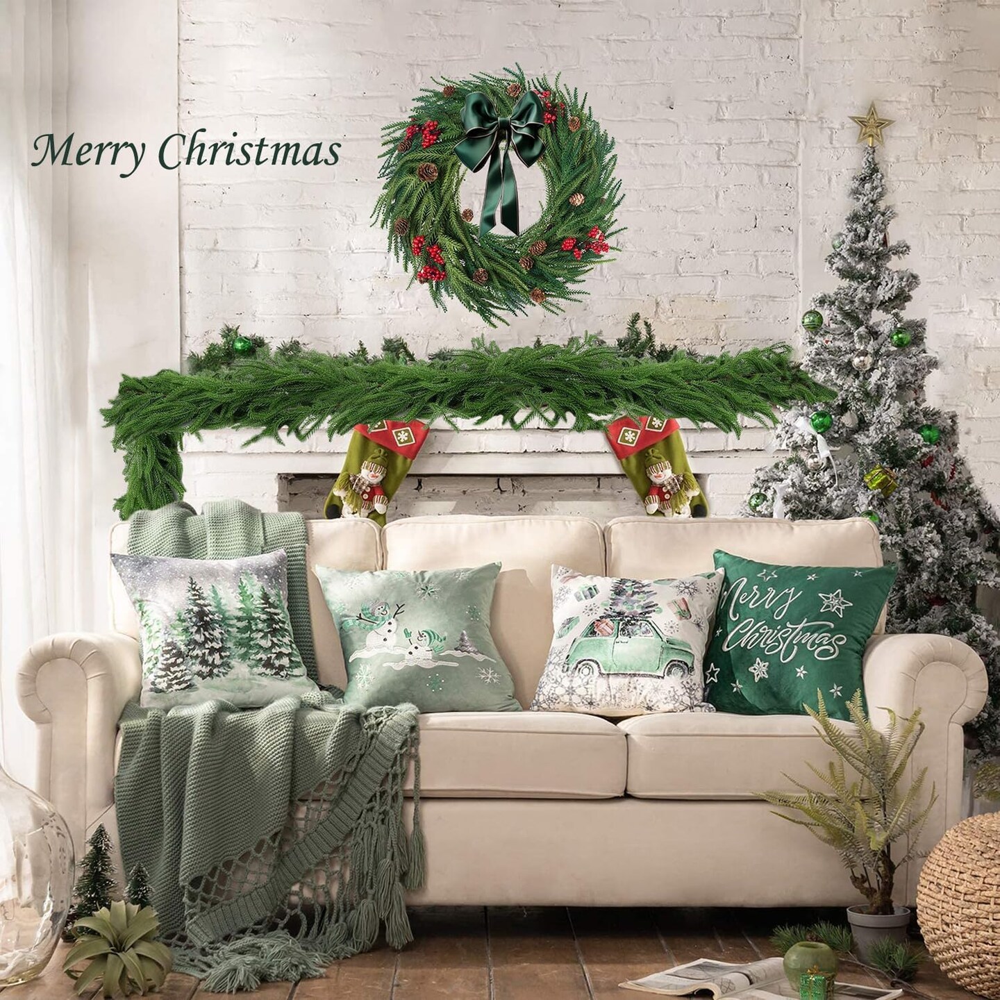 2PCS Artificial Christmas Norfolk Pine Garlands Decoration