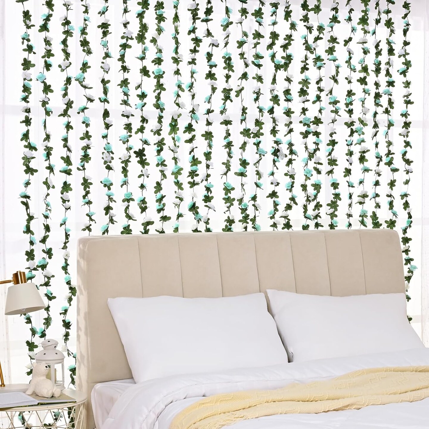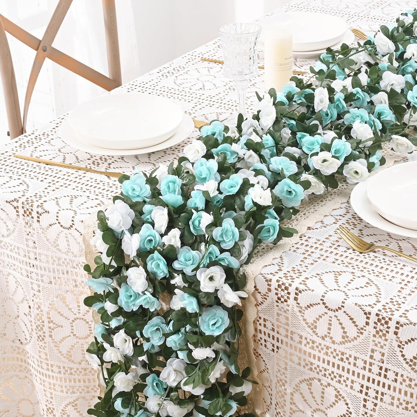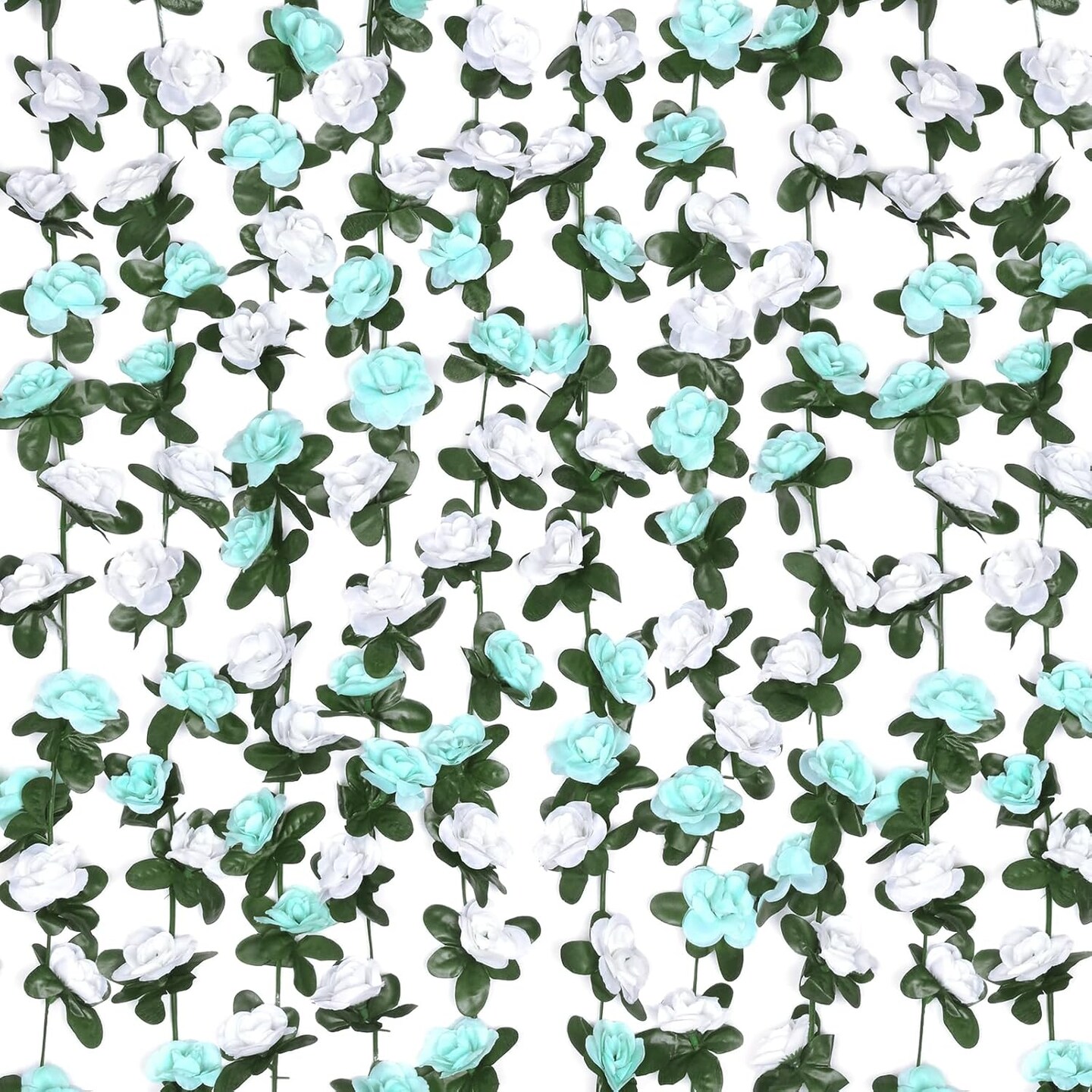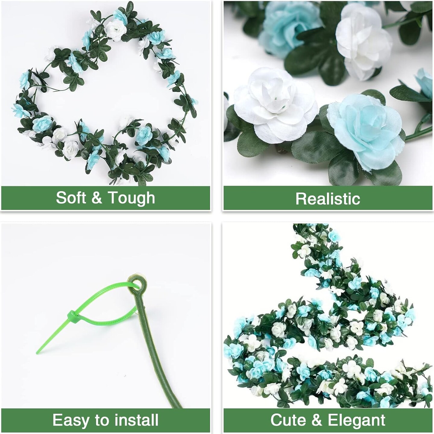 2Pcs Artificial Rose Vines Flower Garland (Blue & White)