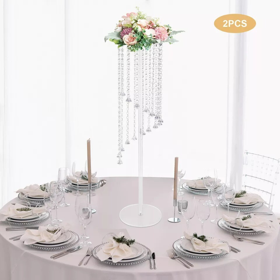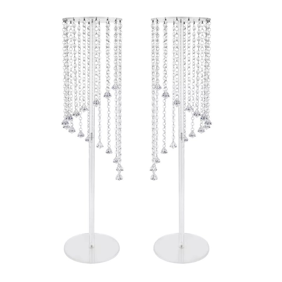 2pcs Clear Acrylic Flower Column Stand Crystal Chains for Wedding Backdrop Decor