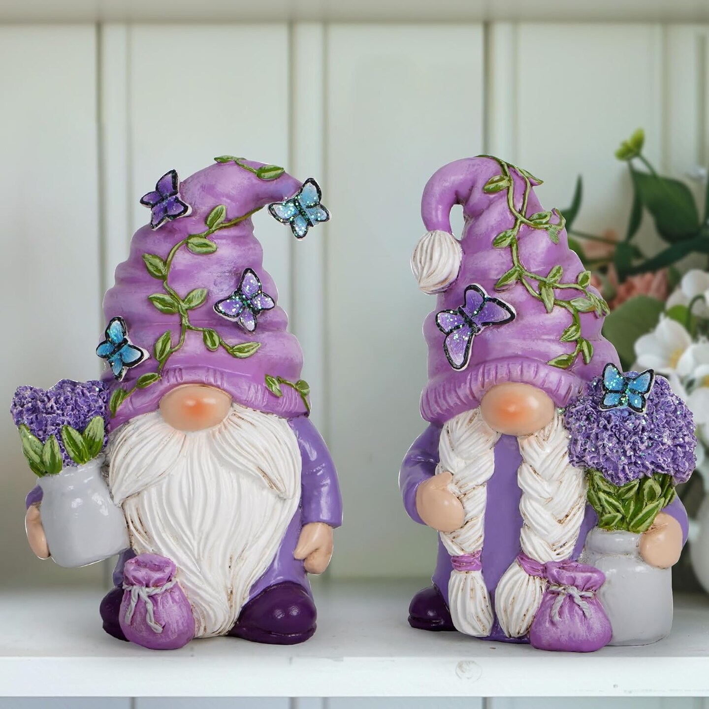 2PCS Lavender Dream Gnome Set - Purple Fragrance Wonderland Journey Spring Swedish Tomte Elf Dwarf Figurines Summer Gnome Indoor Home Decor Gift