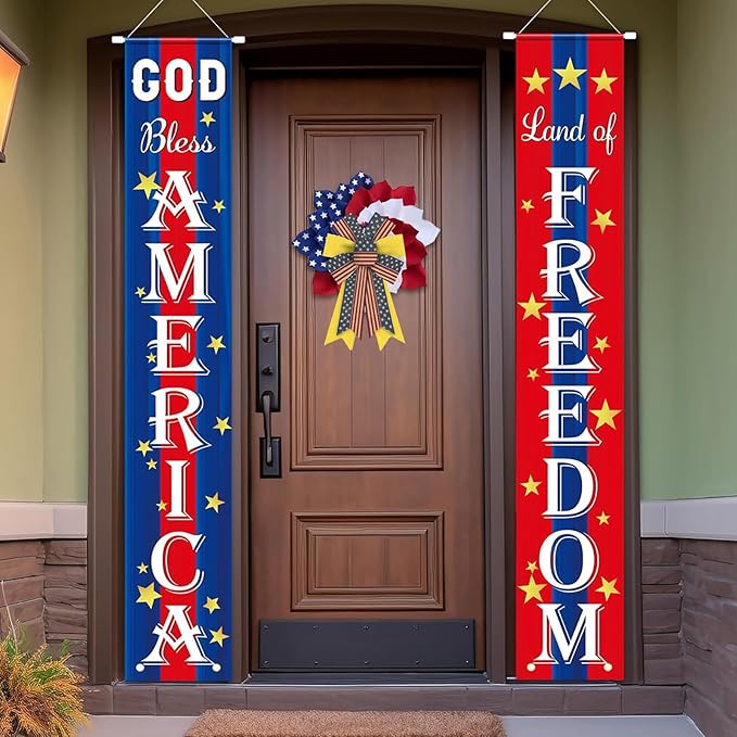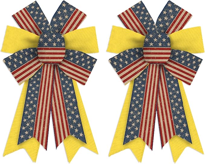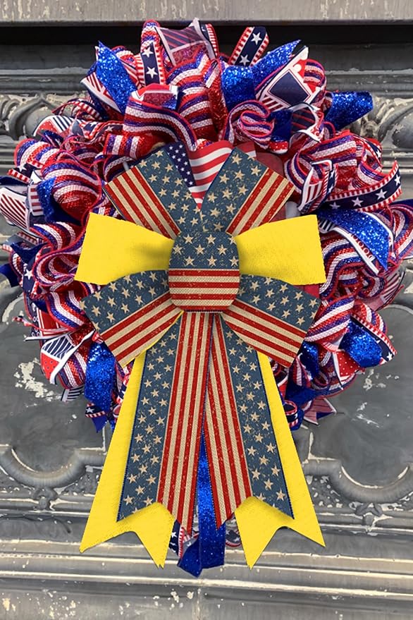 2PCS Patriotic Wreath Bows, American Flag Stars and Stripes Ribbon Bows for 4th of July Decor, Independence Day Indoor Outdoor Wreath Ornament Supplies