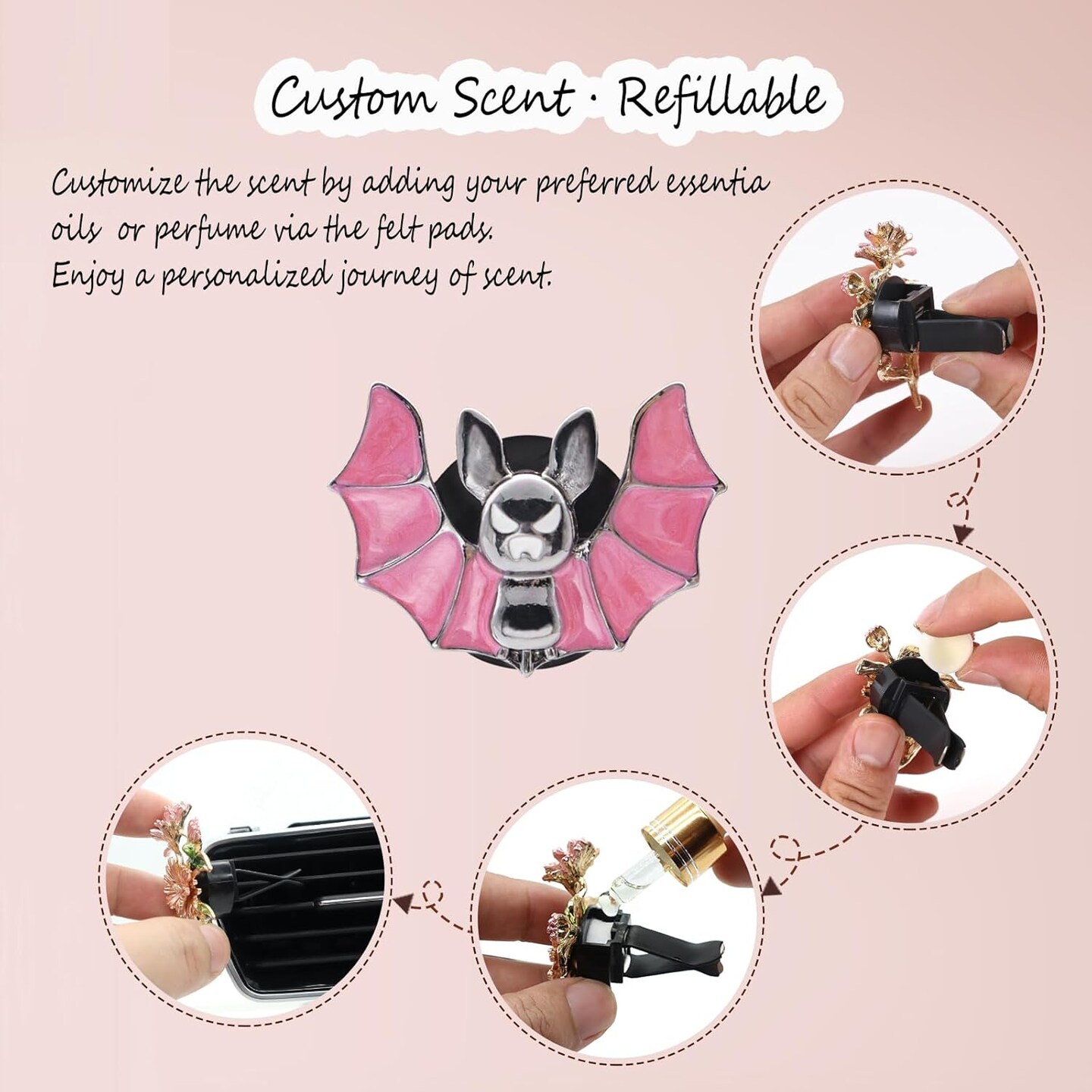 2pcs Pink Black Vampire Bat Car Air Freshener Vent Clips