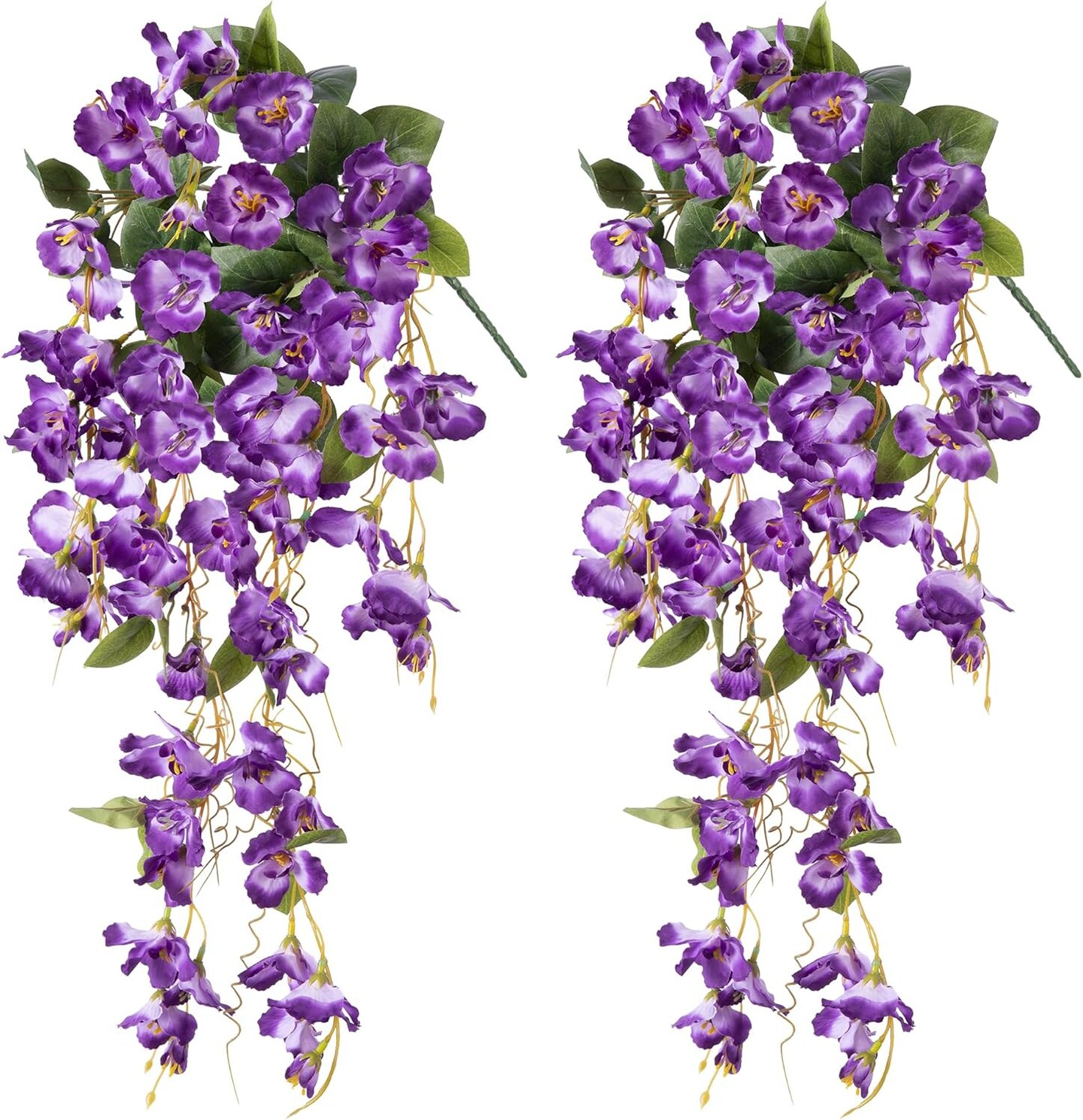 2pcs Purple Silk Hibiscus Long Trailing Vines UV Resistant