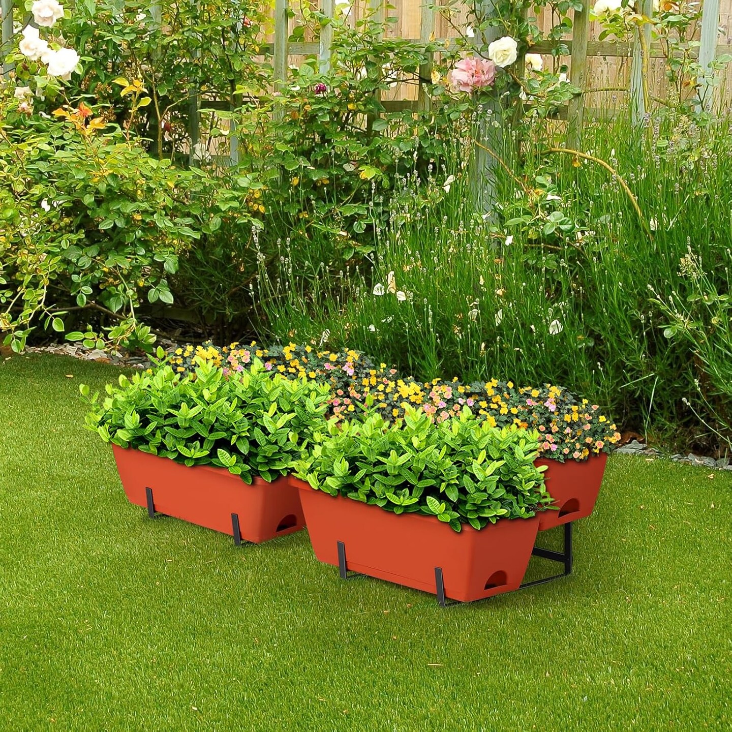 2PCS Raised Garden Bed 2 Tier Vertical Garden Planter Small Outdoor Freestanding Herb Garden Beds with Planter Tray for Outdoor Indoor Flowers Vegetables Plants, Brick Red