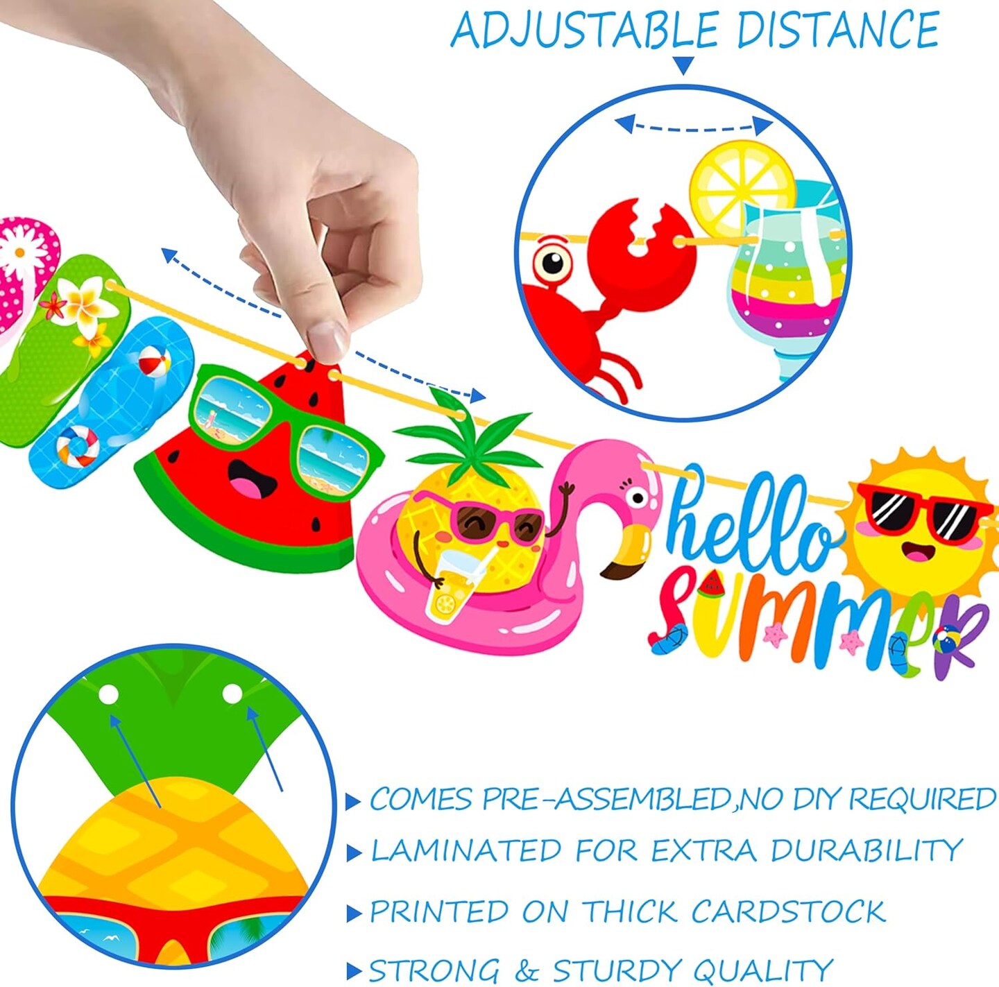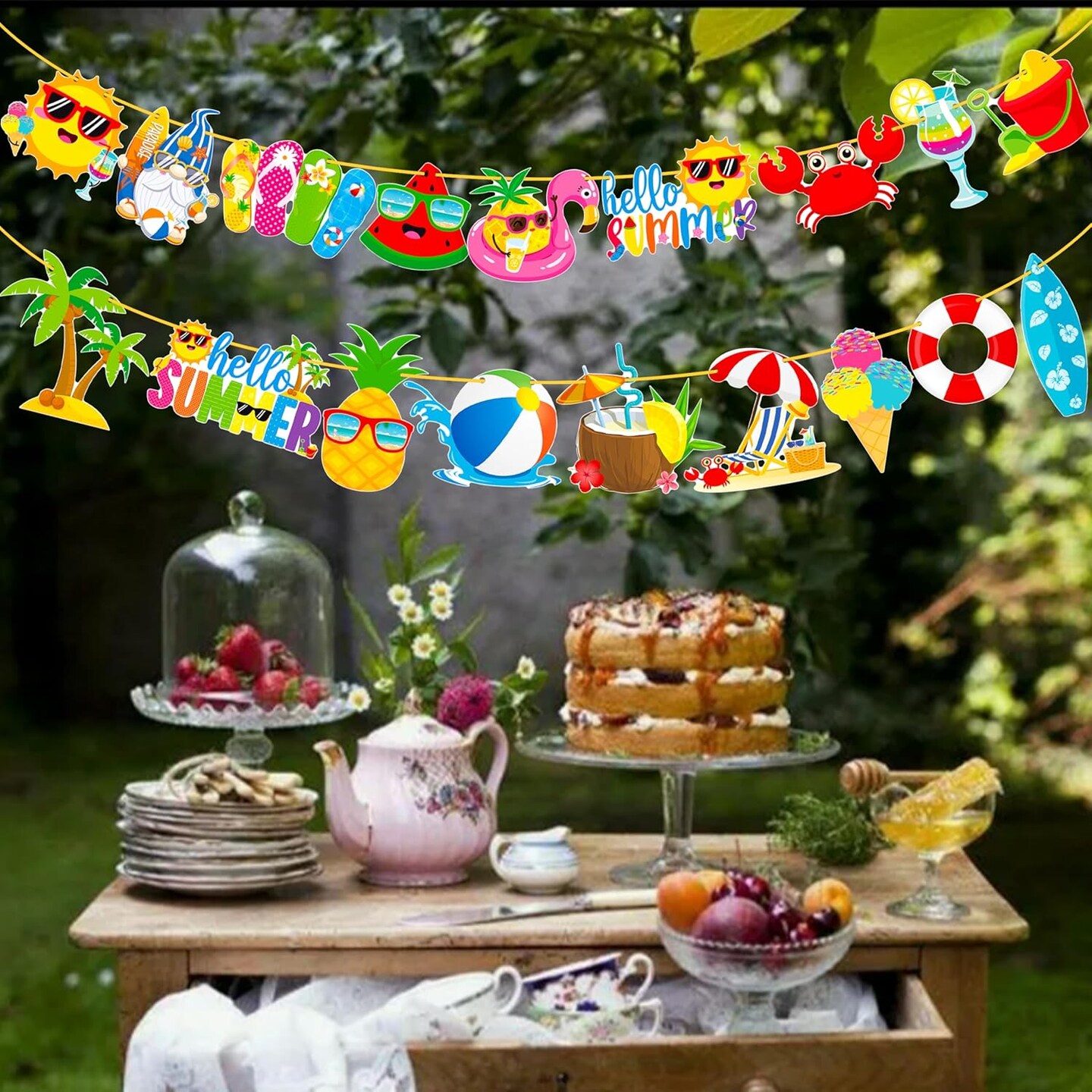 2pcs Summer Beach Pool Party Banners Hello Summer Party Decorations Beach Pool Theme Birthday Banner Decorations for Hawaii Party Baby Shower Supplies