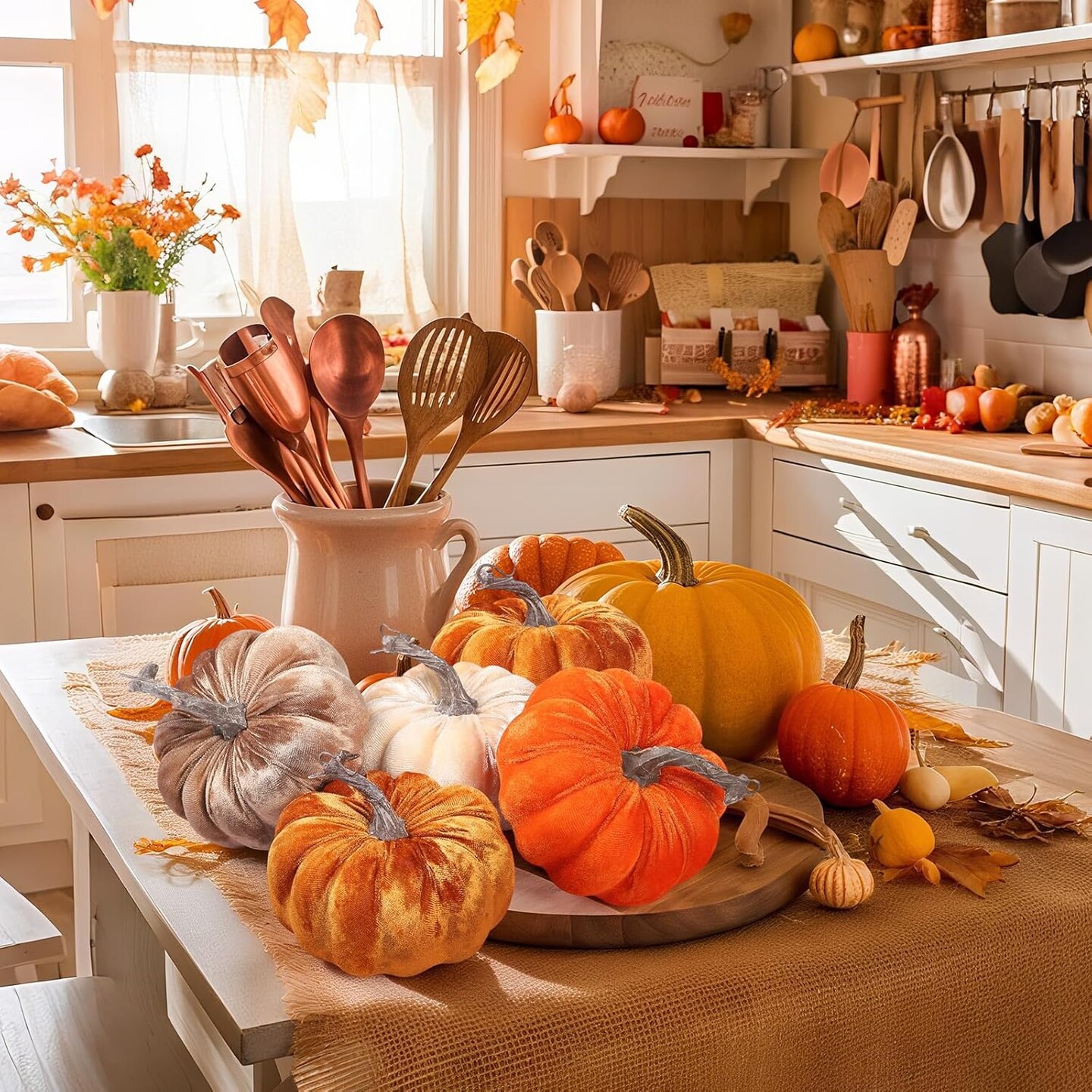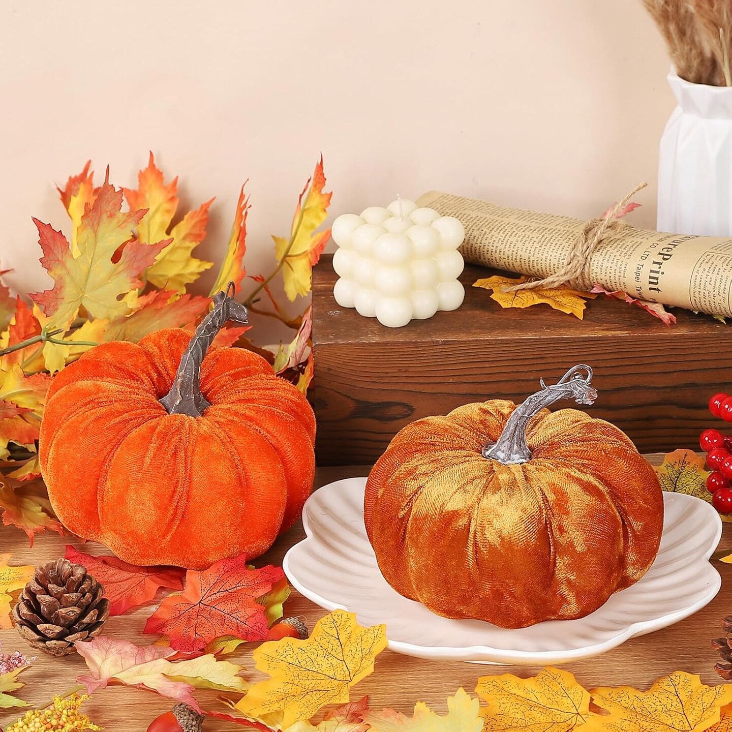 2pcs Velvet Fake Pumpkins Fall Harvest Fabric Foam Pumpkin Thanksgiving Halloween Decor