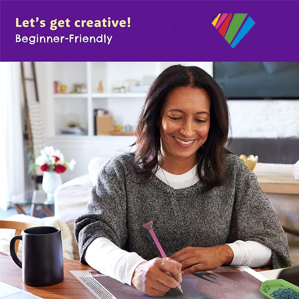 2-Piece Diamond Painting Kits for Adults,5D DIY Full Drill Round Art Gems Rose Flower Art Perfect for Home Wall Deco Diamond