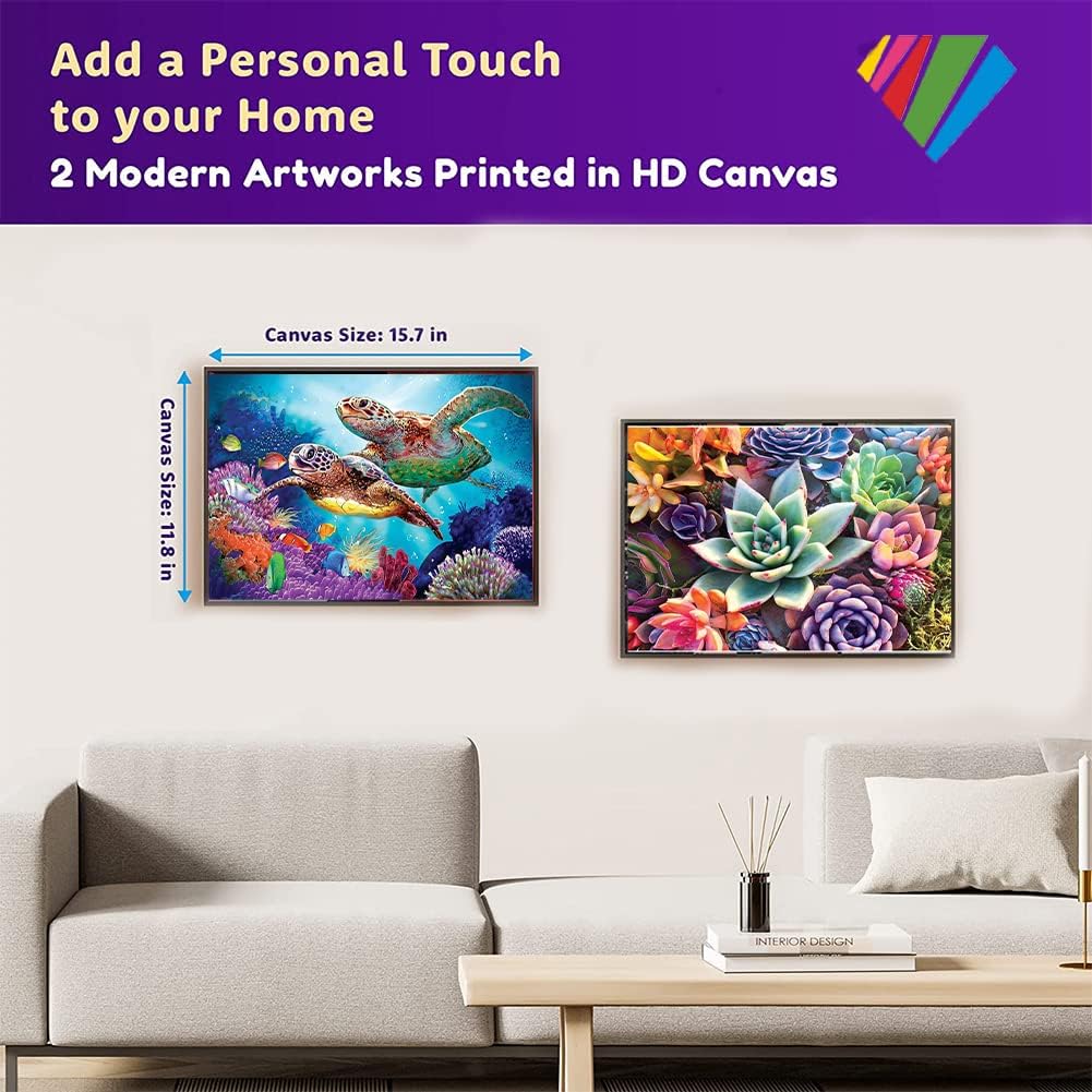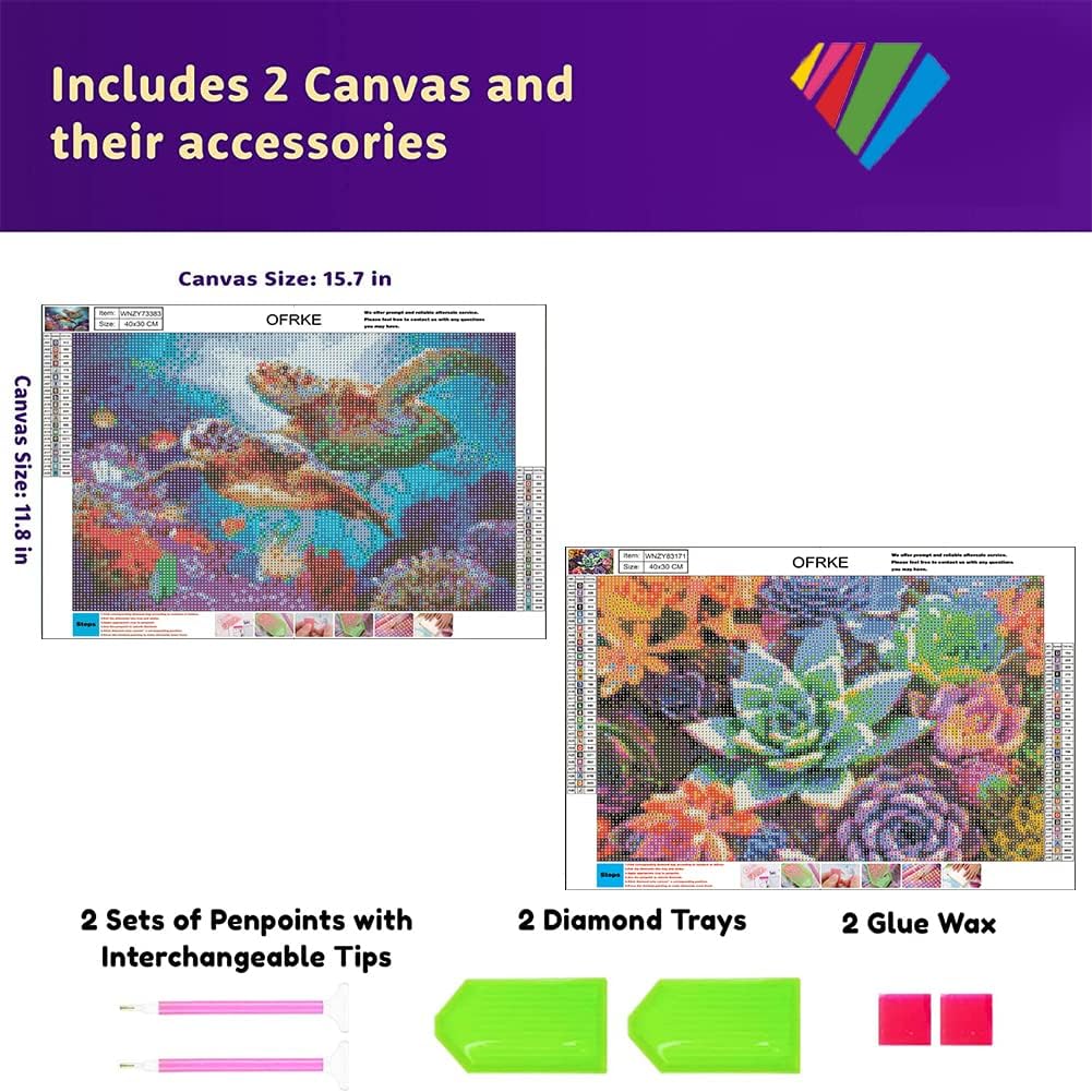 2-Piece Diamond Painting Kits for Adults,Colorful Sea Turtle and Succulent Plant Painting Colorful Artwork for Beginner Perfect for Home Wall Deco Diamond Decor 12"x16