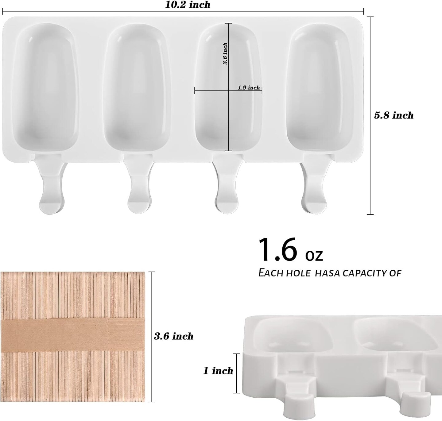 2-Piece Silicone Popsicle Molds Set with 50 Wooden Sticks - Standard Size Ice Cream & Cakesicle Molds - Flexible DIY Ice Pop & Cake Pop Maker for Homemade Treats (White)