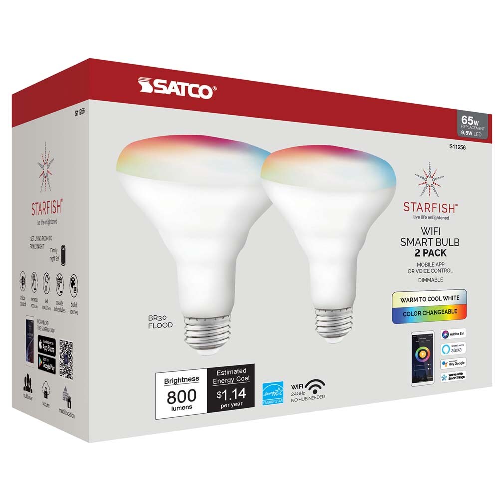 2Pk - Satco 9.5w BR30 LED RGB Tunable White Starfish IOT 800 Lumens 120 Volt
