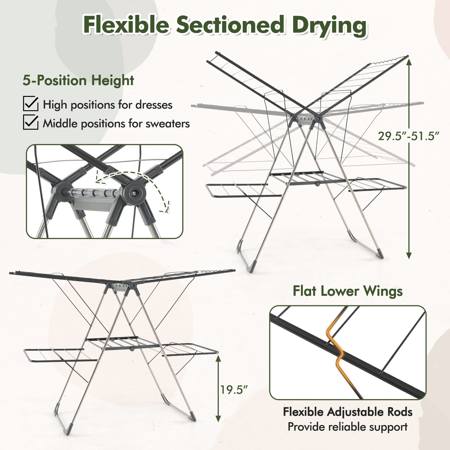 2-Tier 33 Drying Rails Clothes Drying Rack with Height Adjustable Gullwings and Metal Tubes Frame