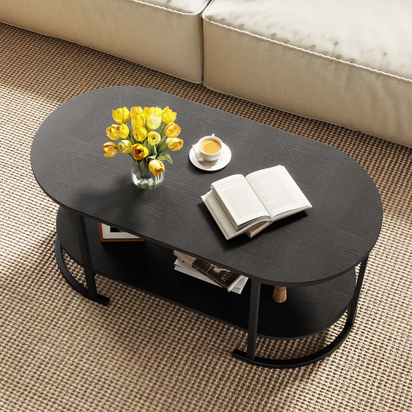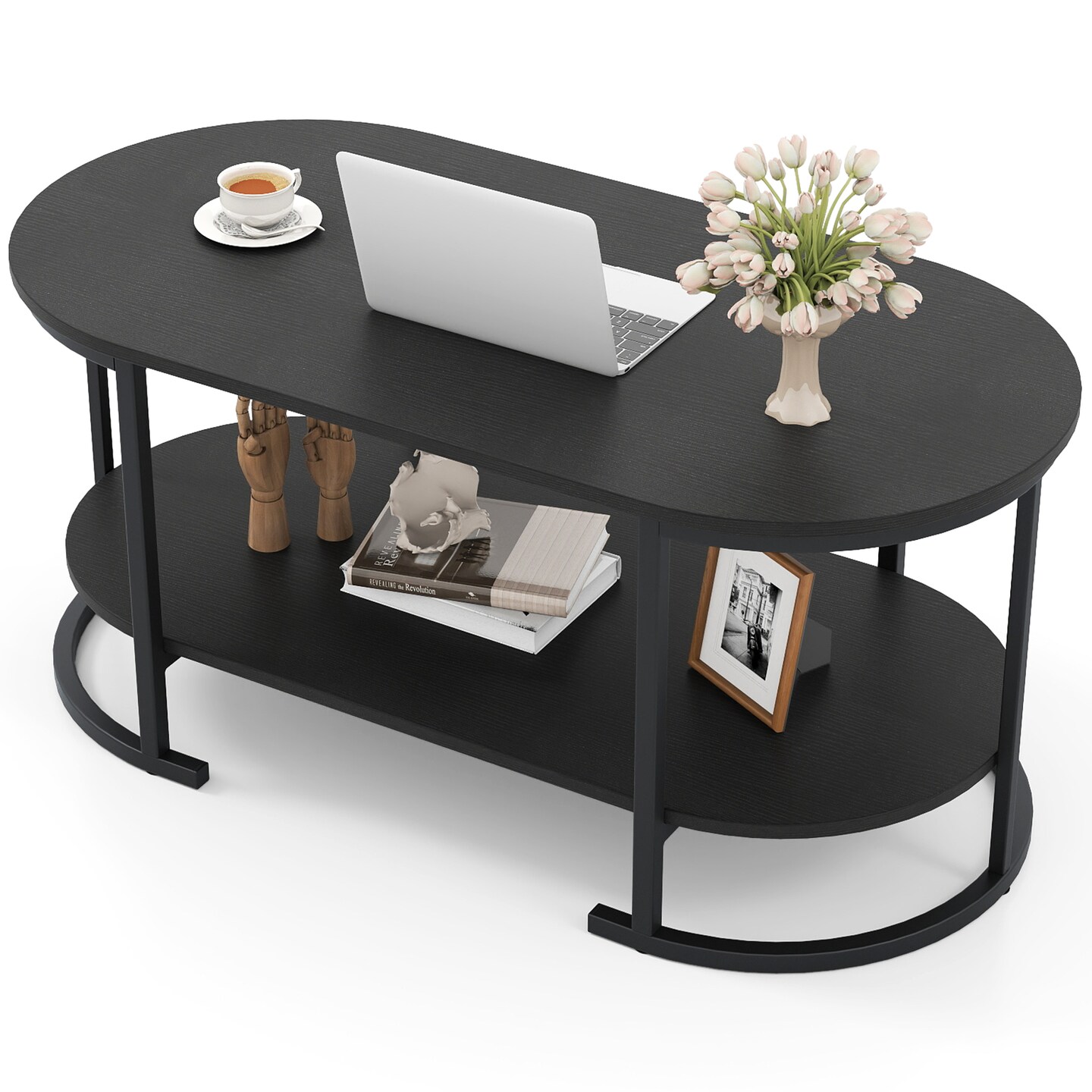 2-Tier Coffee Table Metal Frame Engineered Board Storage Shelf