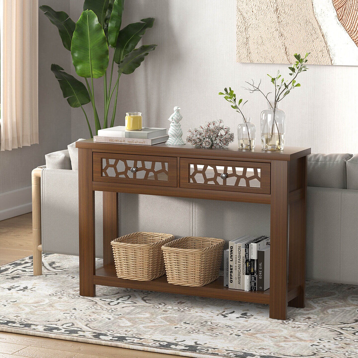 2-Tier Console Table with Drawers and Open Storage Shelf